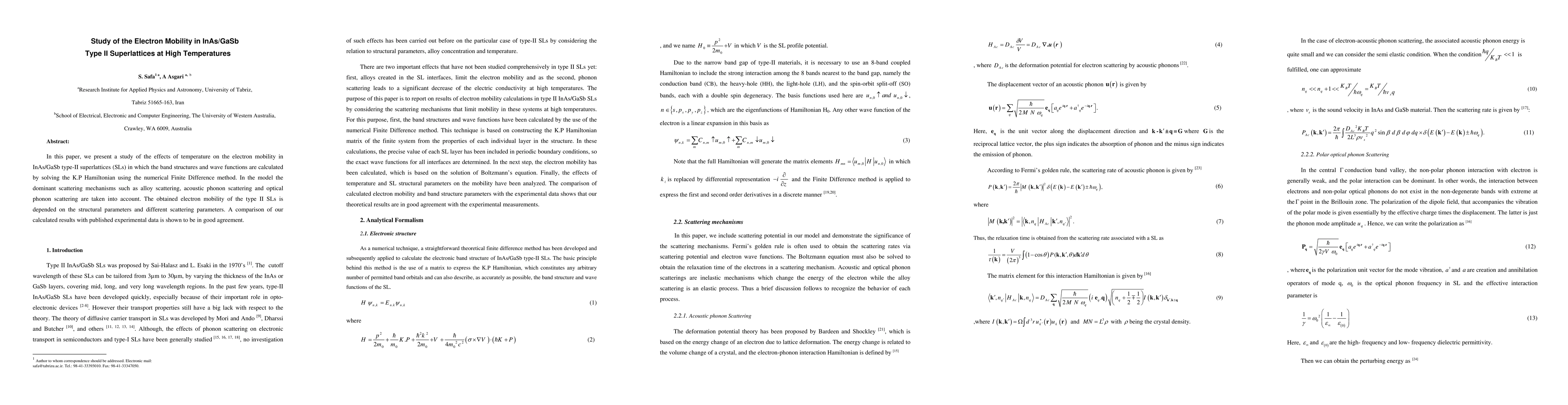 This study investigates electron mobility in InAs/GaSb type-II superlattices at high temperatures, employing the K.P Hamiltonian and Finite Difference method to calculate band structures and wave functions. The research considers alloy, acoustic, and optical phonon scattering, finding that mobility is influenced by structural and scattering parameters, with calculated results matching published experimental data.