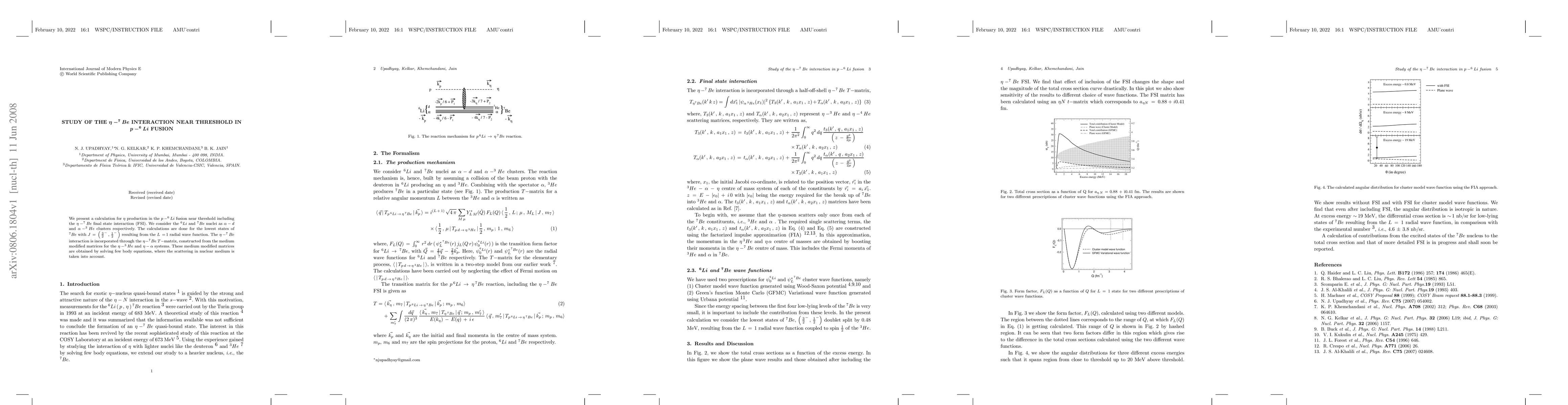 We present a calculation for $\eta$ production in the $p-^6Li$ fusion near threshold including the $\eta-^7Be$ final state interaction (FSI). We consider the $^6Li$ and $^7Be$ nuclei as $\alpha-d$ and $\alpha-^3He$ clusters respectively. The calculations are done for the lowest states of $^7Be$ with $J = ({3\over2}^-, {1\over2}^-)$ resulting from the $L = $1 radial wave function. The $\eta-^7Be$ interaction is incorporated through the $\eta-^7Be$ $T-$matrix, constructed from the medium modified matrices for the $\eta-^3He$ and $\eta-\alpha$ systems. These medium modified matrices are obtained by solving few body equations, where the scattering in nuclear medium is taken into account.