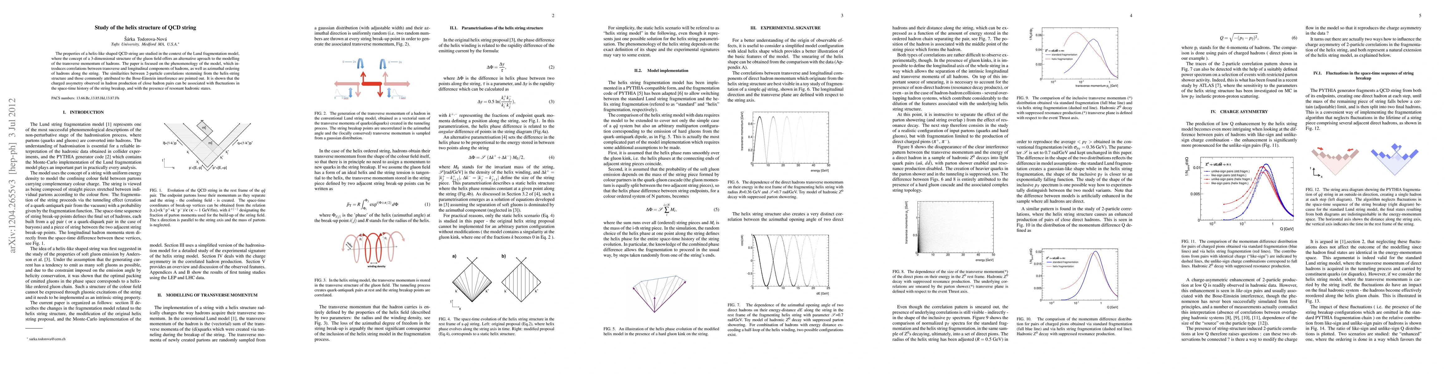 The properties of a helix-like shaped QCD string are studied in the context of the Lund fragmentation model, where the concept of a 3-dimensional structure of the gluon field offers an alternative aproach to the modelling of the transverse momentum of hadrons. The paper is focused on the phenomenology of the model, which introduces correlations between transverse and longitudinal components of hadrons, as well as azimuthal ordering of hadrons along the string. The similarities between 2-particle correlations stemming from the helix-string structure and those commonly attributed to the Bose-Einstein interference are pointed out. It is shown that the charged assymetry observed in the production of close hadron pairs can be associated with fluctuations in the space-time history of the string breakup, and with the presence of resonant hadronic states.