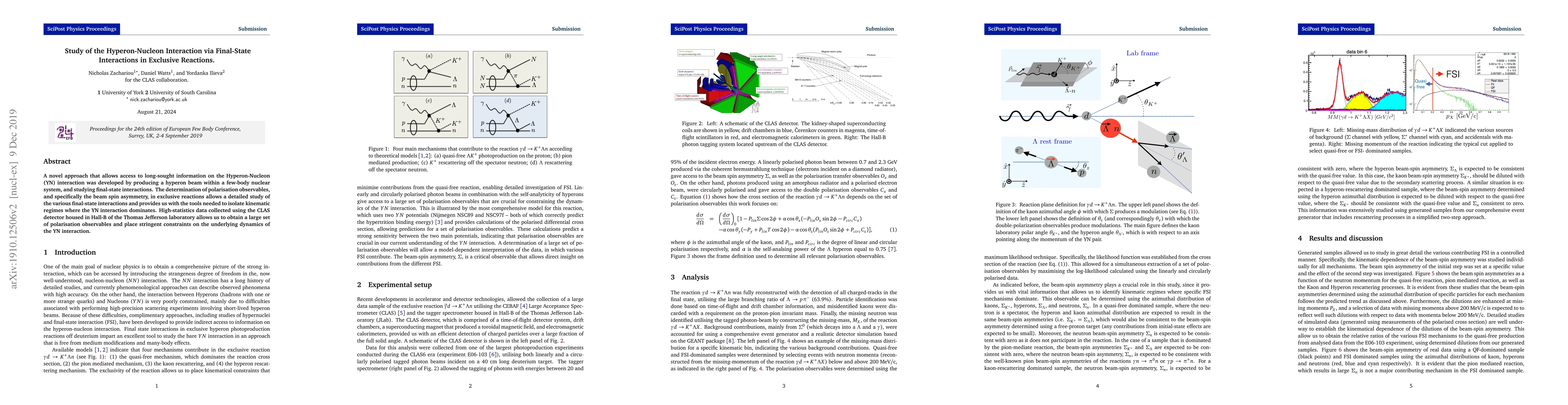 A novel approach that allows access to long-sought information on the Hyperon-Nucleon (YN) interaction was developed by producing a hyperon beam within a few-body nuclear system, and studying final-state interactions. The determination of polarisation observables, and specifically the beam spin asymmetry, in exclusive reactions allows a detailed study of the various final-state interactions and provides us with the tools needed to isolate kinematic regimes where the YN interaction dominates. High-statistics data collected using the CLAS detector housed in Hall-B of the Thomas Jefferson laboratory allows us to obtain a large set of polarisation observables and place stringent constraints on the underlying dynamics of the YN interaction.