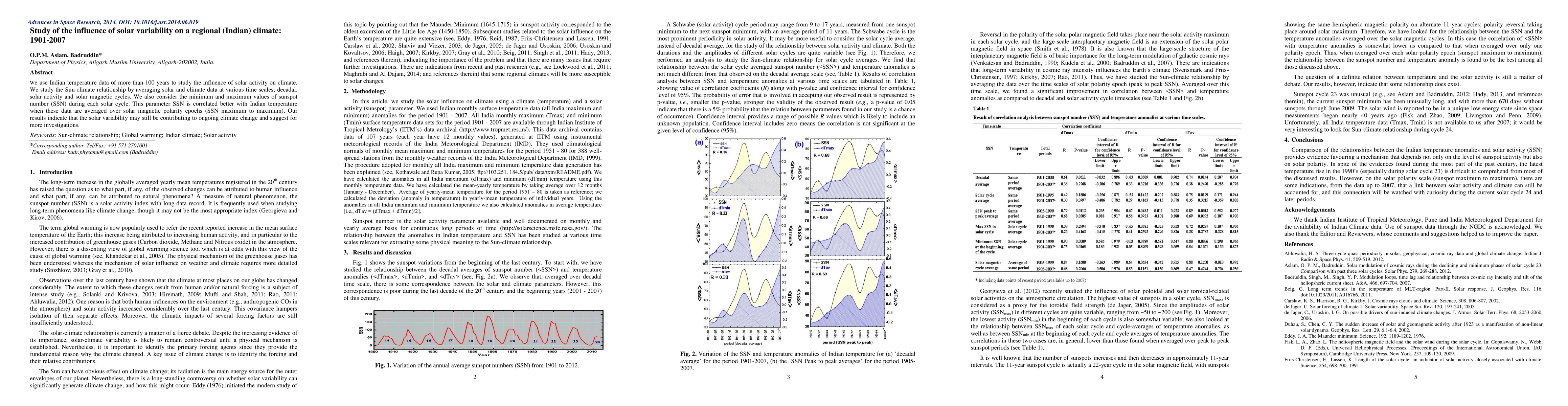 We use Indian temperature data of more than 100 years to study the influence of solar activity on climate. We study the Sun-climate relationship by averaging solar and climate data at various time scales; decadal, solar activity and solar magnetic cycles. We also consider the minimum and maximum values of sunspot number (SSN) during each solar cycle. This parameter SSN is correlated better with Indian temperature when these data are averaged over solar magnetic polarity epochs (SSN maximum to maximum). Our results indicate that the solar variability may still be contributing to ongoing climate change and suggest for more investigations.