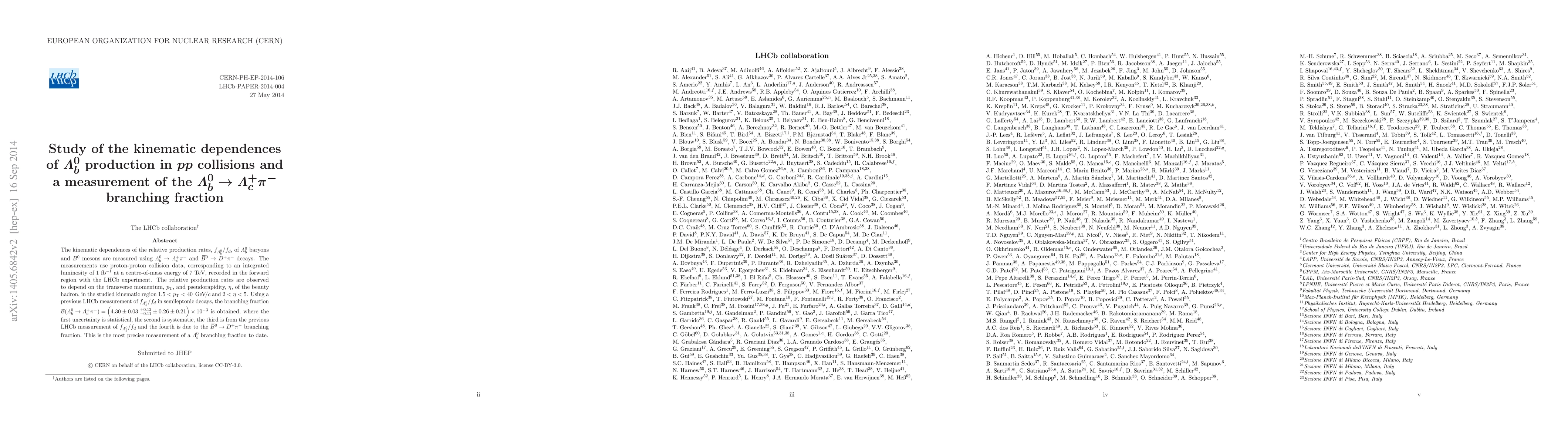 Researchers measure the production rates of baryons and mesons in proton-proton collisions, finding that their kinematic dependences vary with transverse momentum and pseudorapidity. They also report a precise measurement of the $ au_b ightarrow au_car{ u} u_ au$ decay, yielding a branching fraction of $(4.30 ight) imes 10^{-3}$.