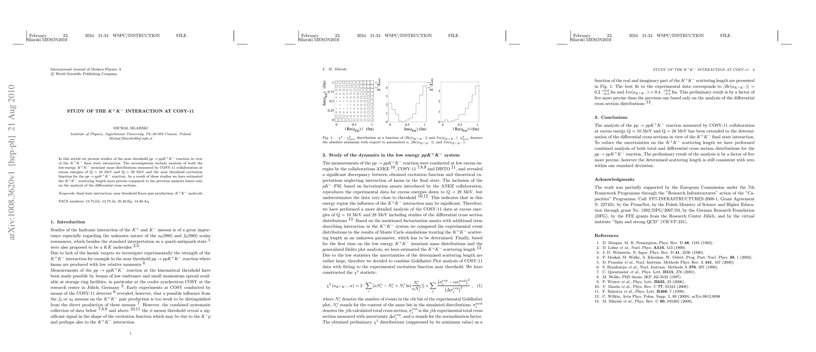 In this article we present studies of the near threshold pp-->ppK+K- reaction in view of the K+K- final state interaction. The investigations include analysis of both the low-energy K+K- invariant mass distributions measured by COSY-11 collaboration at excess energies of Q = 10 MeV and Q = 28 MeV and the near threshold excitation function for the pp-->ppK+K- reaction. As a result of these studies we have estimated the K+K- scattering length more precise compared to the previous analysis based only on the analysis of the differential cross sections.