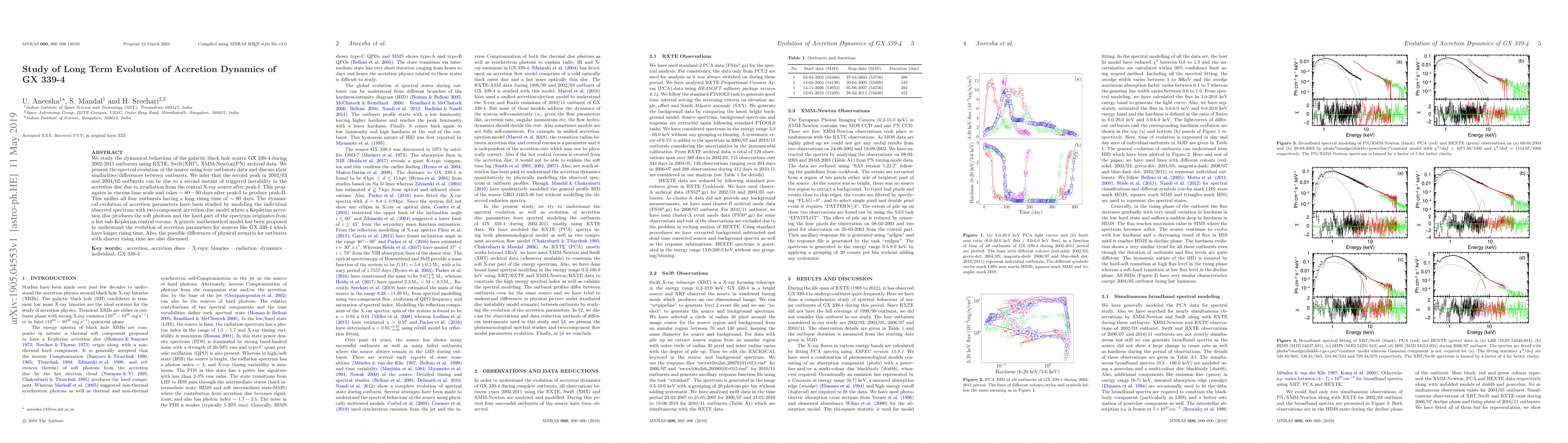 This study examines GX 339-4's accretion dynamics from 2002-2011 using RXTE, Swift, and XMM-Newton data. It identifies a consistent 80-90 day delay between two peaks in three outbursts, suggesting a second disc instability triggered by central X-ray irradiation. A two-component accretion disc model unifies the observed dynamics, proposing a mathematical model for sources with long rising times, and discussing potential differences for those with shorter rising times.