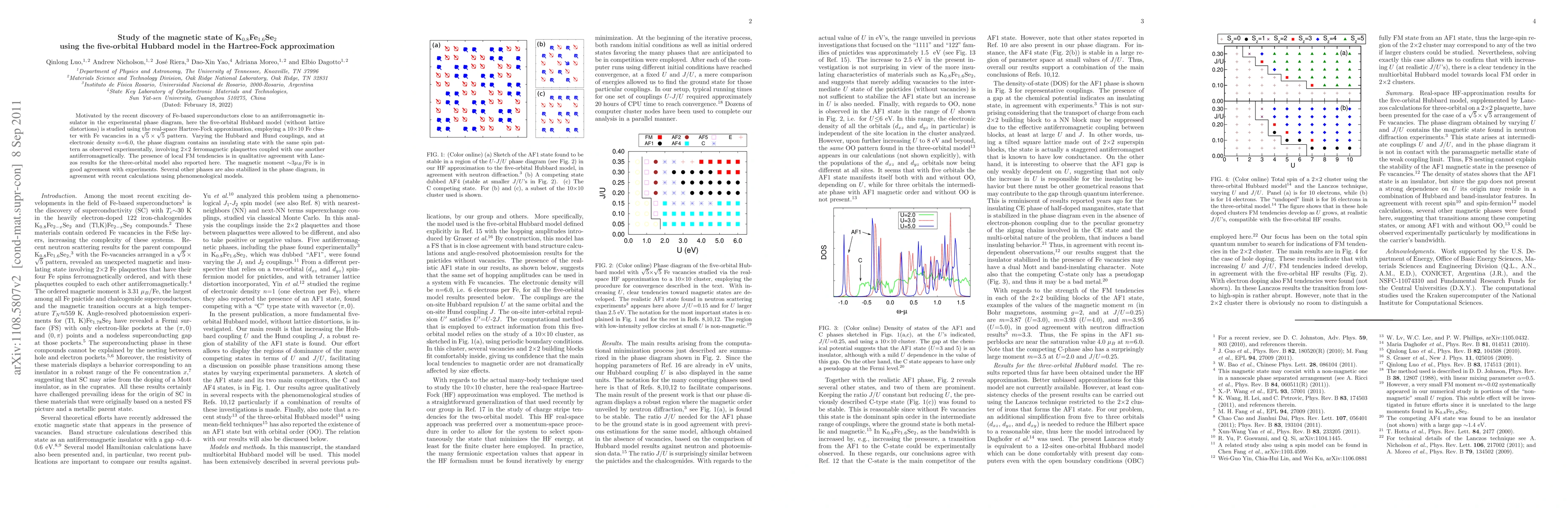 Motivated by the recent discovery of Fe-based superconductors close to an antiferromagnetic insulator in the experimental phase diagram, here the five-orbital Hubbard model (without lattice distortions) is studied using the real-space Hartree-Fock approximation, employing a 10x10 Fe cluster with Fe vacancies in a $\sqrt{5}x\sqrt{5}$ pattern. Varying the Hubbard and Hund couplings, and at electronic density $n$=6.0, the phase diagram contains an insulating state with the same spin pattern as observed experimentally, involving 2x2 ferromagnetic plaquettes coupled with one another antiferromagnetically. The presence of local ferromagnetic tendencies is in qualitative agreement with Lanczos results for the three-orbital model also reported here. The magnetic moment ~ 3$\mu_B$/Fe is in good agreement with experiments. Several other phases are also stabilized in the phase diagram, in agreement with recent calculations using phenomenological models.