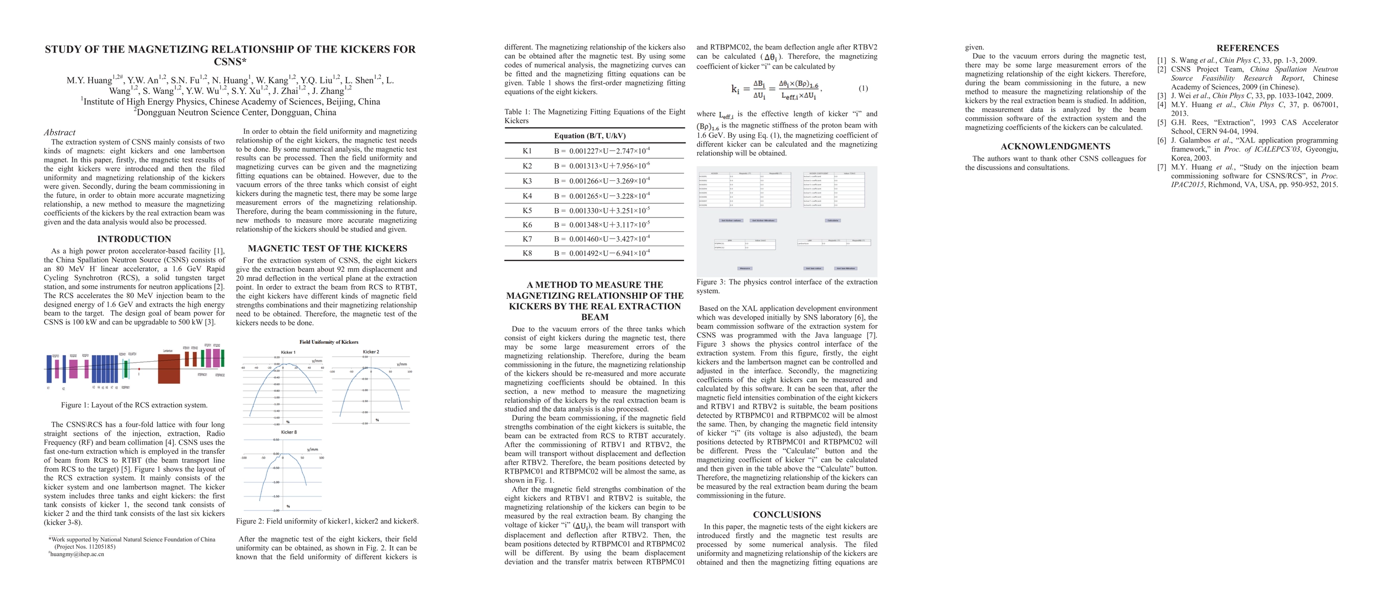 The extraction system of CSNS mainly consists of two kinds of magnets: eight kickers and one lambertson magnet. In this paper, firstly, the magnetic test results of the eight kickers were introduced and then the filed uniformity and magnetizing relationship of the kickers were given. Secondly, during the beam commissioning in the future, in order to obtain more accurate magnetizing relationship, a new method to measure the magnetizing coefficients of the kickers by the real extraction beam was given and the data analysis would also be processed.