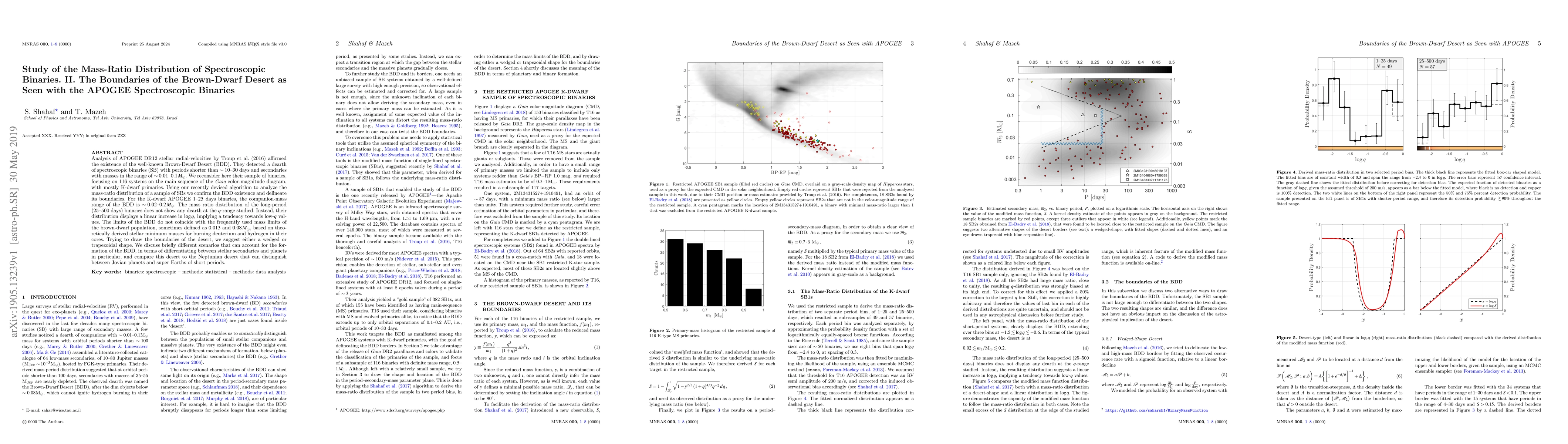 This study confirms the existence of the Brown-Dwarf Desert (BDD) using APOGEE spectroscopic binaries, delineating its boundaries as a companion-mass range of $\sim0.02$ - $0.2\, M_{\odot}$ for K-dwarf primaries. The mass ratio distribution of long-period binaries shows a linear increase in $\log q$, suggesting a preference for low-mass companions.