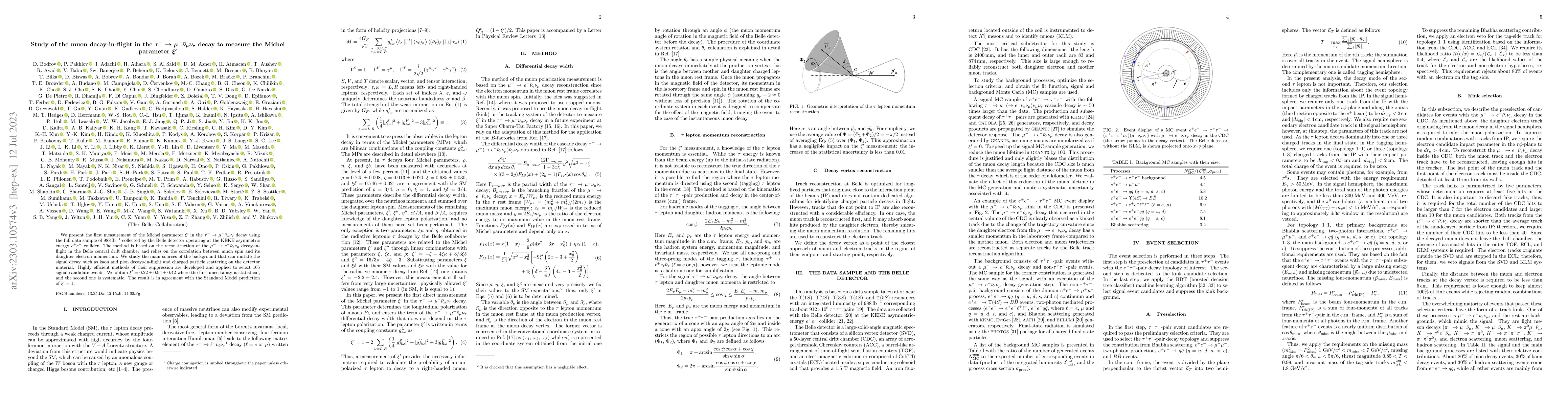 This study measures the Michel parameter $\xi^\prime$ in the $\tau^-\to\mu^-\bar{\nu}_\mu\nu_\tau$ decay using data from the Belle detector, focusing on the decay-in-flight reconstruction. The result, $\xi^\prime=0.22\pm0.94\pm0.42$, is consistent with the Standard Model prediction of $\xi^\prime=1$.