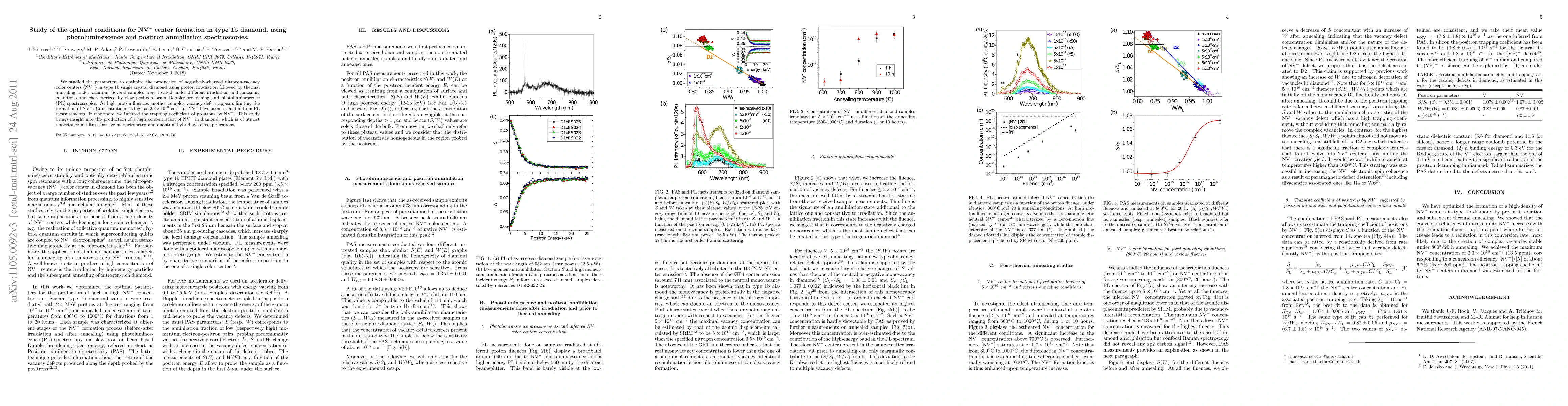 The research optimizes NV- center formation in type 1b diamond via proton irradiation and annealing, achieving high NV- concentrations (up to 2.3 x 10^18 cm^-3). The study uses photoluminescence and positron annihilation spectroscopies, revealing that high proton fluences create another vacancy defect hindering NV- formation.