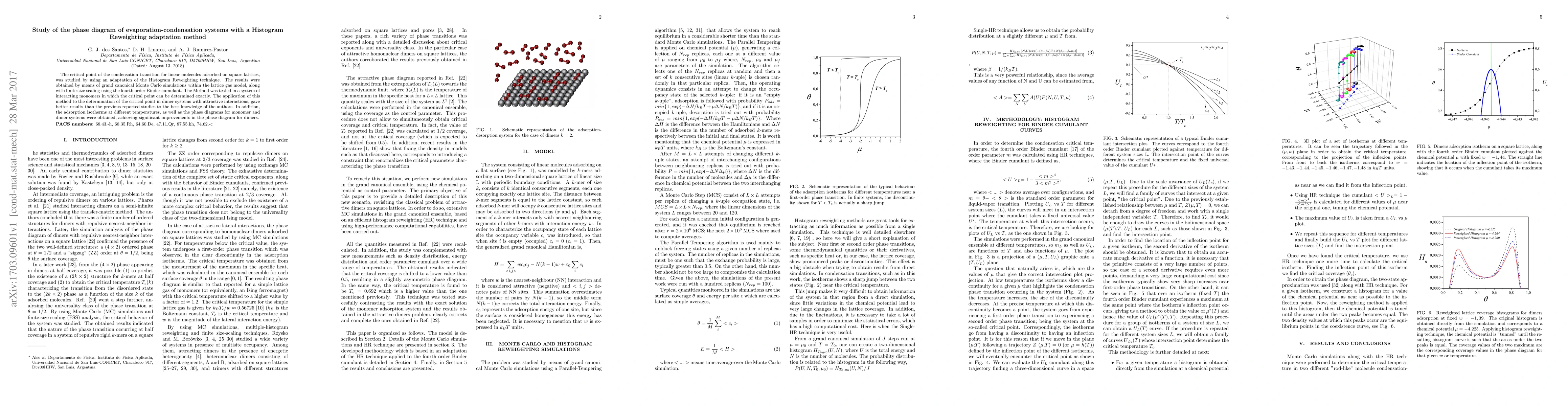 Researchers used a new adaptation of the Histogram Reweighting method to study phase diagrams in evaporation-condensation systems, achieving better results for dimer systems with attractive interactions.