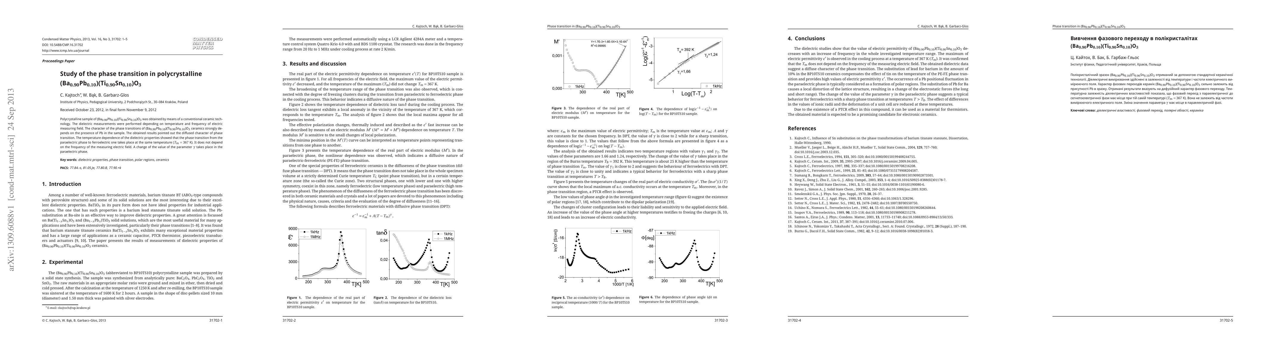A polycrystalline sample of (Ba_{0.90}Pb_{0.10})(Ti_{0.90}Sn_{0.10})O_3 was obtained using conventional ceramic technology. Dielectric measurements were conducted over a temperature and frequency range of 20 Hz to 1 MHz, cooling at a rate of 2 K/min, using an Agilent 4284A meter and Quatro Krio4.0 temperature control system with a BDS1100 cryostat.