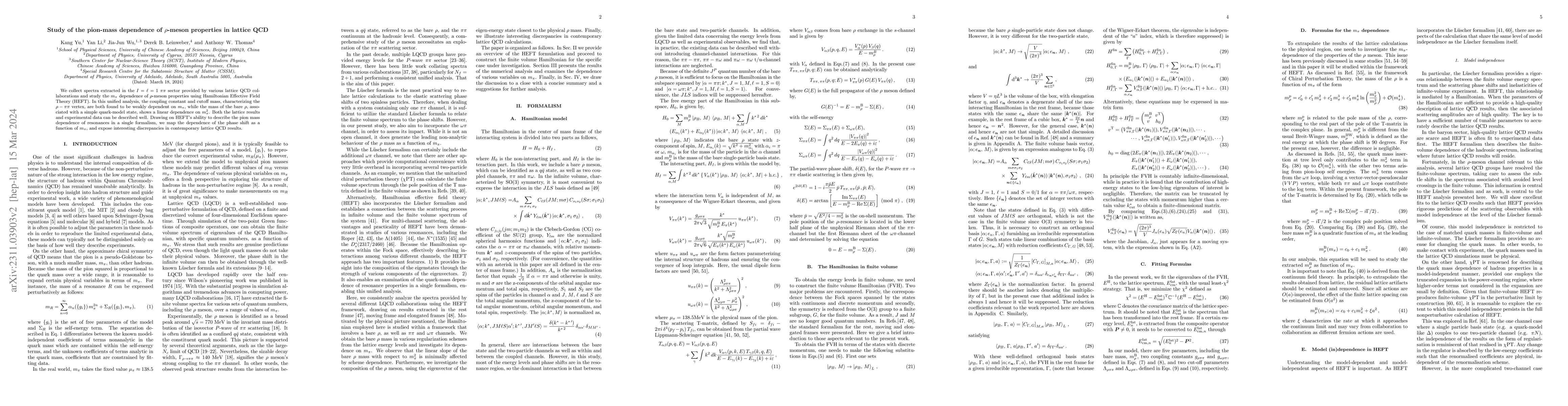 This study analyzes the pion mass dependence of $\rho$-meson properties from various lattice QCD datasets using Hamiltonian Effective Field Theory (HEFT). The analysis reveals weak dependence of the $\rho - \pi \pi$ vertex on pion mass, while the bare $\rho$ mass shows a linear dependence on $m_\pi^2$, consistent with both lattice results and experimental data.