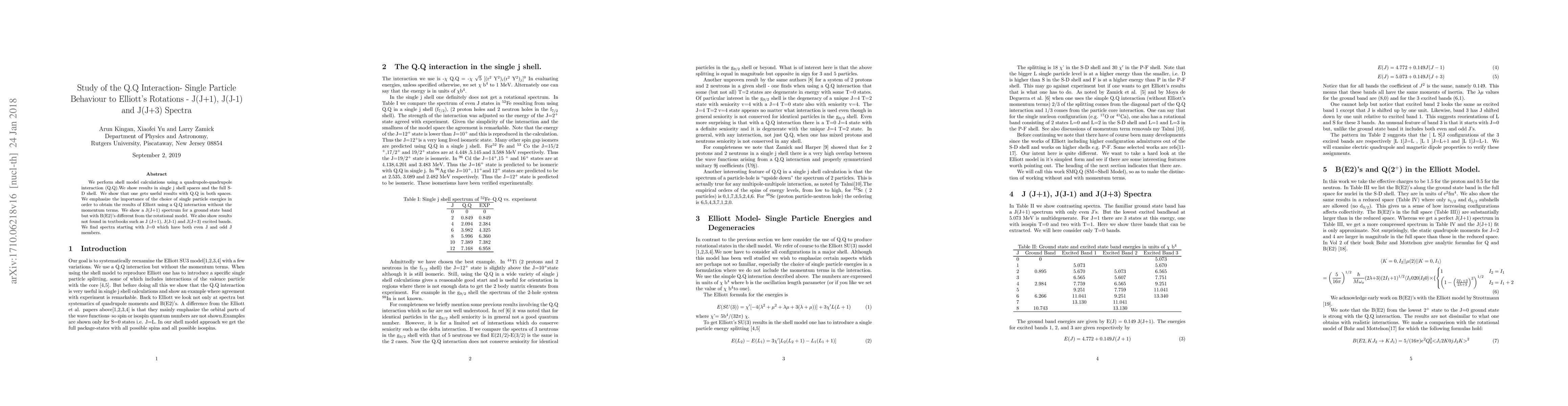 Researchers used a quadrupole-quadrupole interaction to study single-particle behavior in nuclear physics, finding spectra with both even and odd J values that differ from traditional rotational models.