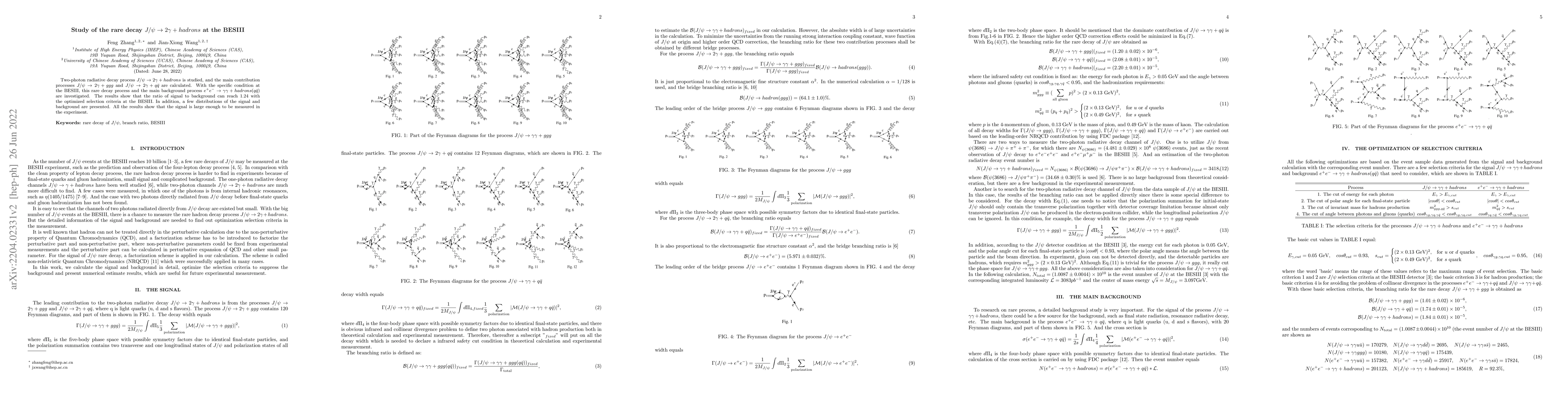 This paper investigates the rare decay $J/\psi \to 2\gamma+hadrons$ at the BESIII, focusing on the main processes $J/\psi \to 2\gamma + g g g$ and $J/\psi \to 2\gamma + q \bar{q}$. The study optimizes selection criteria to achieve a signal-to-background ratio of 1.24, demonstrating sufficient signal strength for experimental measurement.