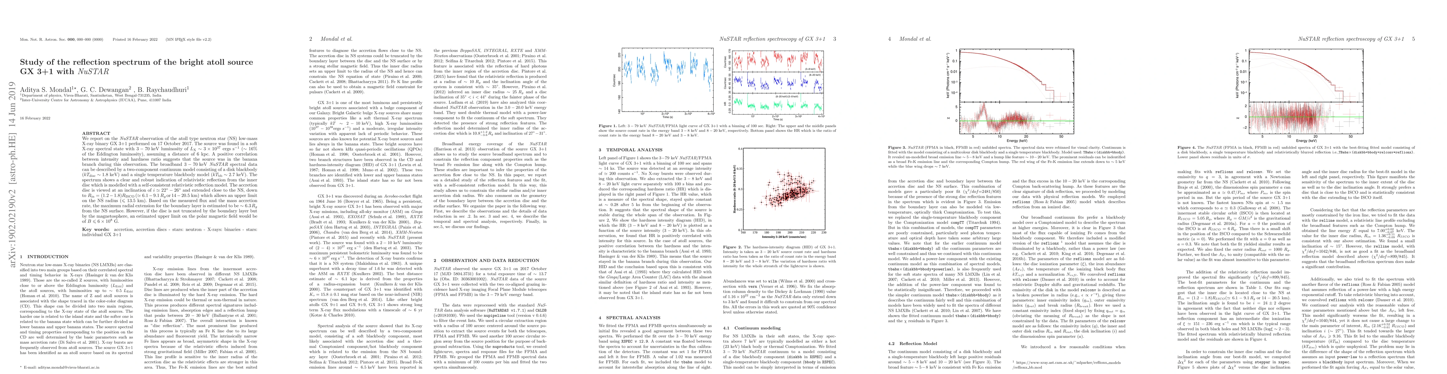 We report on the \nustar{} observation of the atoll type neutron star (NS) low-mass X-ray binary GX~3+1 performed on 17 October 2017. The source was found in a soft X-ray spectral state with $3-70$keV luminosity of $L_\text{X}\sim3\times 10^{37}$ ergs s$^{-1}$ ($\sim 16\%$ of the Eddington luminosity), assuming a distance of 6 kpc. A positive correlation between intensity and hardness ratio suggests that the source was in the banana branch during this observation. The broadband $3-70$keV \nustar{} spectral data can be described by a two-component continuum model consisting of a disk blackbody ($kT_\text{disc}\sim1.8$keV) and a single temperature blackbody model ($kT_\text{bb}\sim2.7$keV). The spectrum shows a clear and robust indication of relativistic reflection from the inner disc which is modelled with a self-consistent relativistic reflection model. The accretion disc is viewed at an inclination of $i\simeq22^\circ-26^\circ$ and extended close to the NS, down to $R_\text{in}=(1.2-1.8) R_\text{ISCO}\:(\simeq6.1-9.1\,R_{g}\: \text{or}\: 14-20.5$ km) which allows an upper limit on the NS radius ($\leq13.5$ km). Based on the measured flux and the mass accretion rate, the maximum radial extension for the boundary layer is estimated to be $\sim6.3\:R_{g}$ from the NS surface. However, if the disc is not truncated by the boundary layer but by the magnetosphere, an estimated upper limit on the polar magnetic field would be of $B\leq6\times10^{8}$ G.
