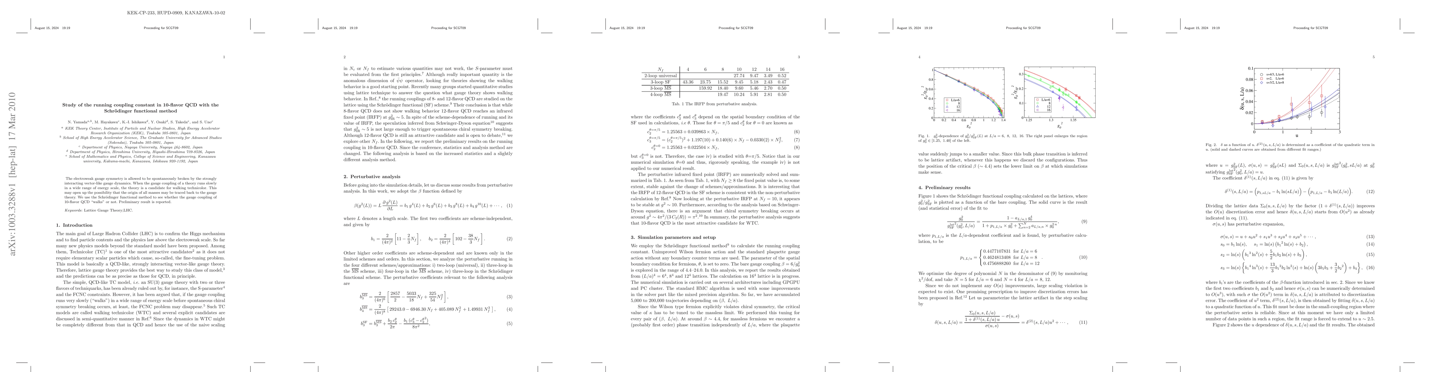 The electroweak gauge symmetry is allowed to be spontaneously broken by the strongly interacting vector-like gauge dynamics. When the gauge coupling of a theory runs slowly in a wide range of energy scale, the theory is a candidate for walking technicolor. This may open up the possibility that the origin of all masses may be traced back to the gauge theory. We use the \SF method to see whether the gauge coupling of 10-flavor QCD "walks" or not. Preliminary result is reported.