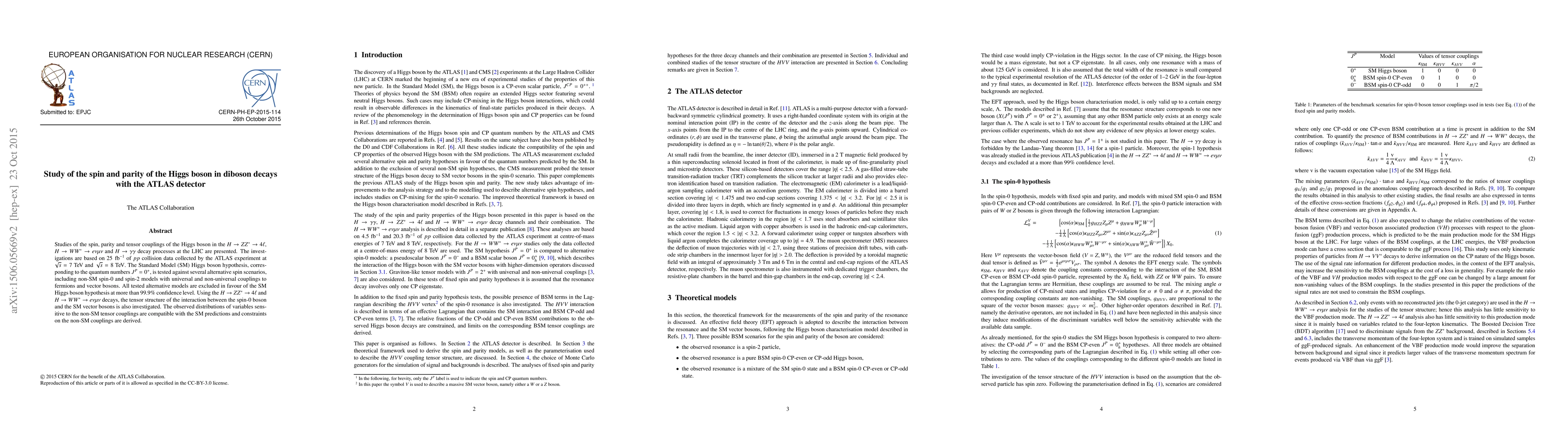 This study investigates the spin, parity, and tensor couplings of the Higgs boson using diboson decay processes at the LHC with the ATLAS detector, analyzing data from 25 fb$^{-1}$ of proton-proton collisions. The Standard Model Higgs boson hypothesis ($J^P=0^+$) is confirmed with over 99.9% confidence, excluding alternative spin scenarios and non-SM tensor couplings.