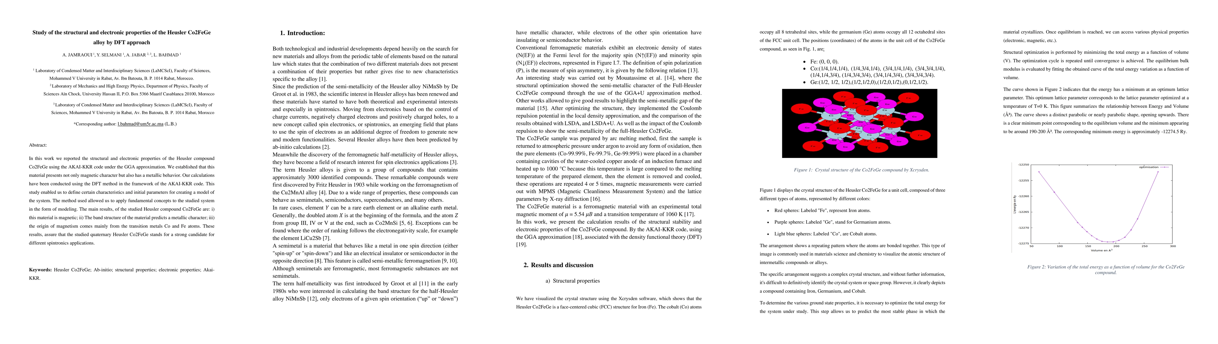 The study utilized the AKAI-KKR code under the GGA approximation within the DFT method to investigate the structural and electronic properties of the Heusler Co2FeGe alloy.