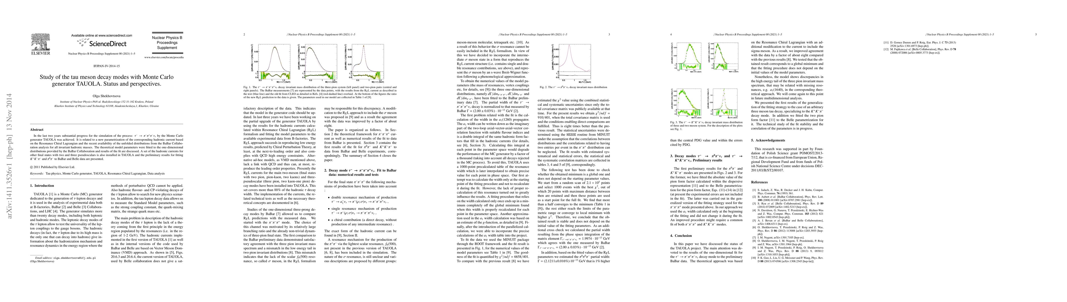 In the last two years substantial progress for the simulation of the process: $\tau^- \to \pi^-\pi^+\pi^- \nu_\tau$ by the Monte Carlo generator TAUOLA was achieved. It is related to a new parametrization of the corresponding hadronic current based on the Resonance Chiral Lagrangian and the recent availability of the unfolded distributions from the BaBar Collaboration analysis for all invariant hadronic masses. The theoretical model parameters were fitted to the one-dimensional distributions provided by the BaBar Collaboration and results of the fit are discussed. A set of the hadronic currents for other final states with two and three pseudoscalars is also installed in TAUOLA and the preliminary results for fitting $K^+K^-\pi^-$ and $\pi^0\pi^-$ to BaBar and Belle data are presented.