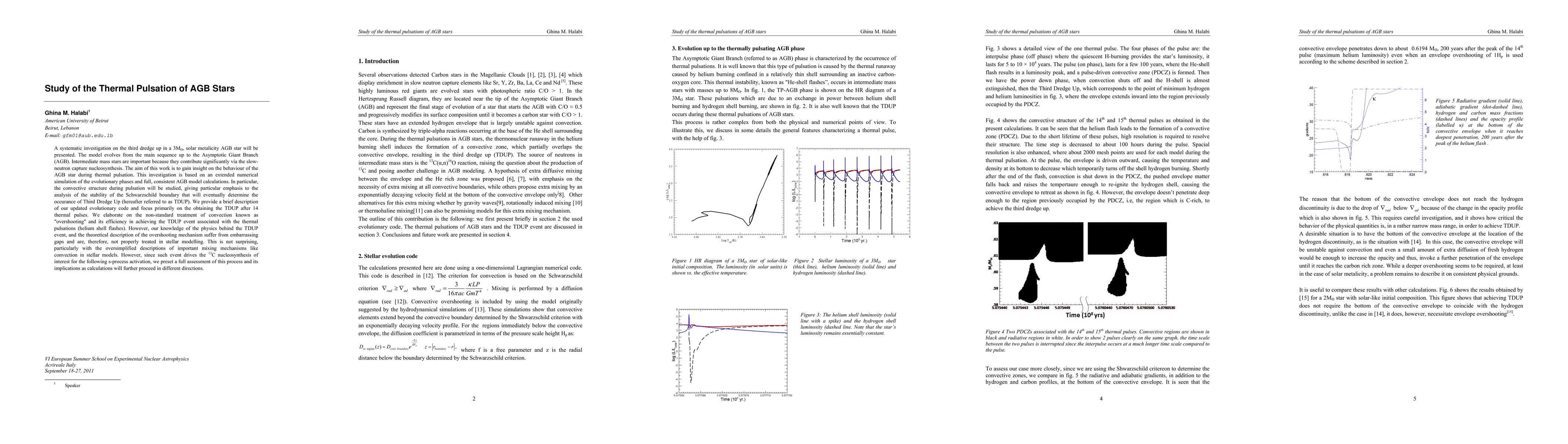 A systematic investigation on the third dredge up in a 3M$_{\odot}$, solar metallicity AGB star will be presented. The model evolves from the main sequence up to the Asymptotic Giant Branch (AGB). Intermediate mass stars are important because they contribute significantly via the slow neutron capture nucleosynthesis. The aim of this work is to gain insight on the behaviour of the AGB star during thermal pulsation. This investigation is based on an extended numerical simulation of the evolutionary phases and full, consistent AGB model calculations. In particular, the convective structure during pulsation will be studied, giving particular emphasis to the analysis of the stability of the Schwarzschild boundary that will eventually determine the occurrence of Third Dredge Up (hereafter referred to as TDUP). We provide a brief description of our updated evolutionary code and focus primarily on the obtaining the TDUP after 14 thermal pulses. We elaborate on the non-standard treatment of convection known as "overshooting" and its efficiency in achieving the TDUP event associated with the thermal pulsations (helium shell flashes). However, our knowledge of the physics behind the TDUP event, and the theoretical description of the overshooting mechanism suffer from embarrassing gaps and are, therefore, not properly treated in stellar modelling. This is not surprising, particularly with the oversimplified descriptions of important mixing mechanisms like convection in stellar models. However, since such event drives the $^{13}$C nucleosynthesis of interest for the following s-process activation, we present a full assessment of this process and its implications as calculations will further proceed in different directions.