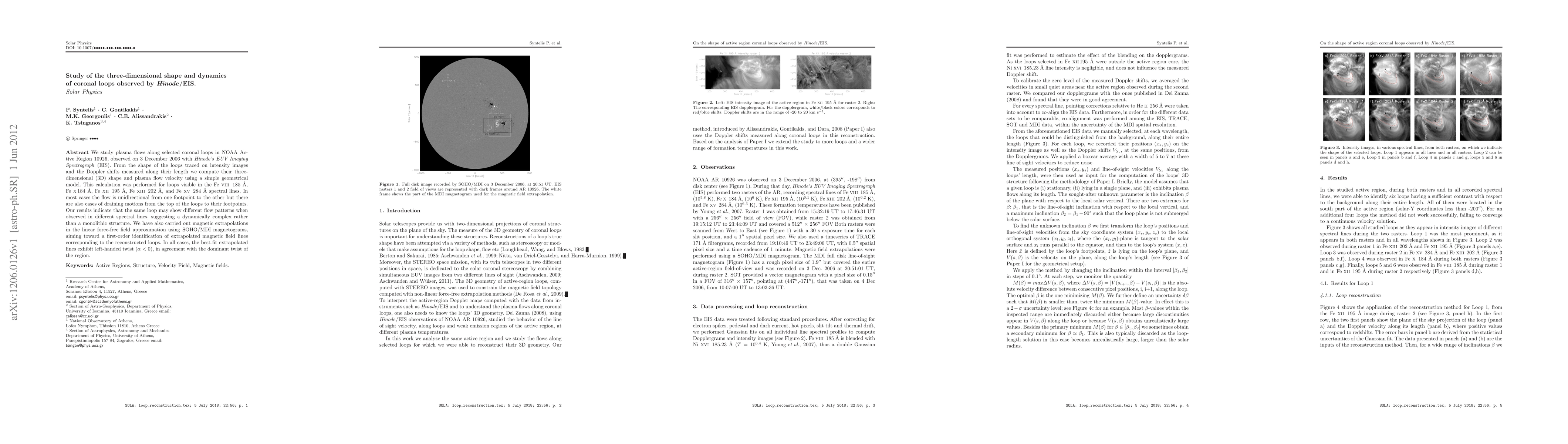 Researchers studied coronal loops using Hinode/EIS data to determine their 3D shape and plasma flow velocity, finding complex dynamics that vary with spectral line observation.