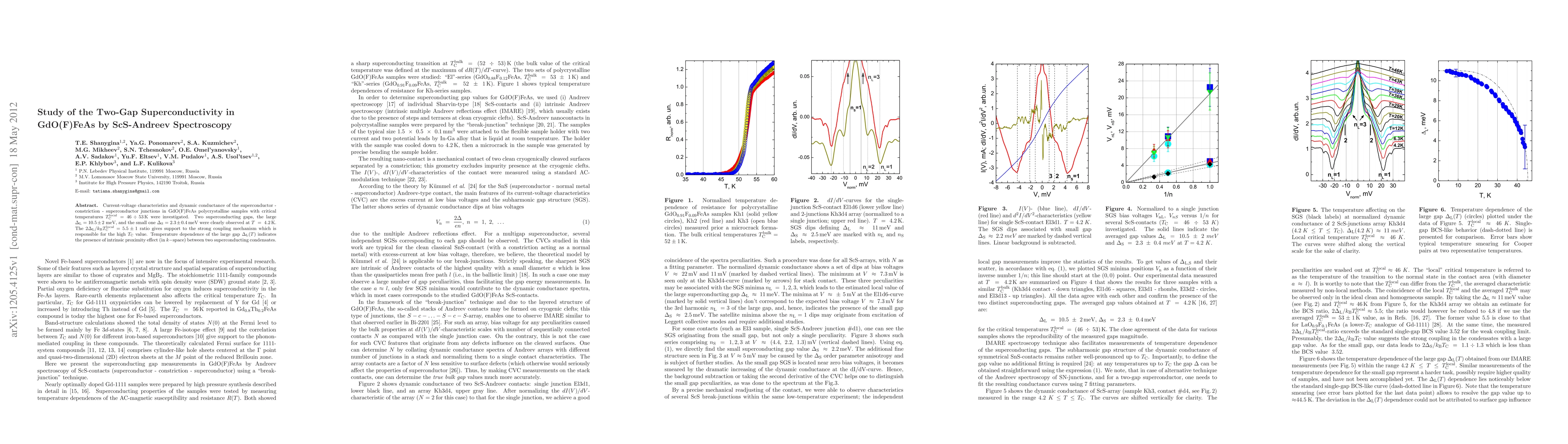 Researchers investigated GdO(F)FeAs superconductor junctions, discovering two distinct gaps with large Delta_L = 10.5 meV and small Delta_S = 2.3 meV, supporting a strong coupling mechanism for high Tc value.