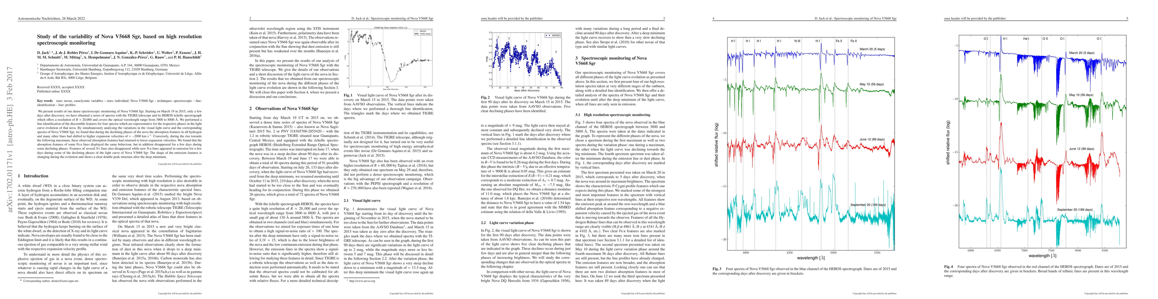 The paper presents a detailed high-resolution spectroscopic analysis of Nova V5668 Sgr, identifying and characterizing spectral feature variations across different light curve phases.