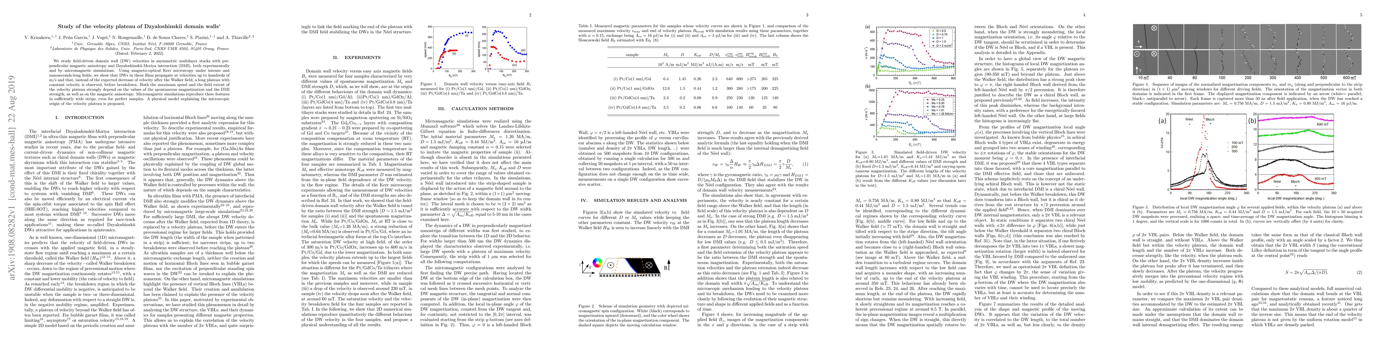 We study field-driven domain wall (DW) velocities in asymmetric multilayer stacks with perpendicular magnetic anisotropy and Dzyaloshinskii-Moriya interaction (DMI), both experimentally and by micromagnetic simulations. Using magneto-optical Kerr microscopy under intense and nanoseconds-long fields, we show that DWs in these films propagate at velocities up to hundreds of m/s and that, instead of the expected decrease of velocity after the Walker field, a long plateau with constant velocity is observed, before breakdown. Both the maximum speed and the field extent of the velocity plateau strongly depend on the values of the spontaneous magnetization and the DMI strength, as well as on the magnetic anisotropy. Micromagnetic simulations reproduce these features in sufficiently wide strips, even for perfect samples. A physical model explaining the microscopic origin of the velocity plateau is proposed.