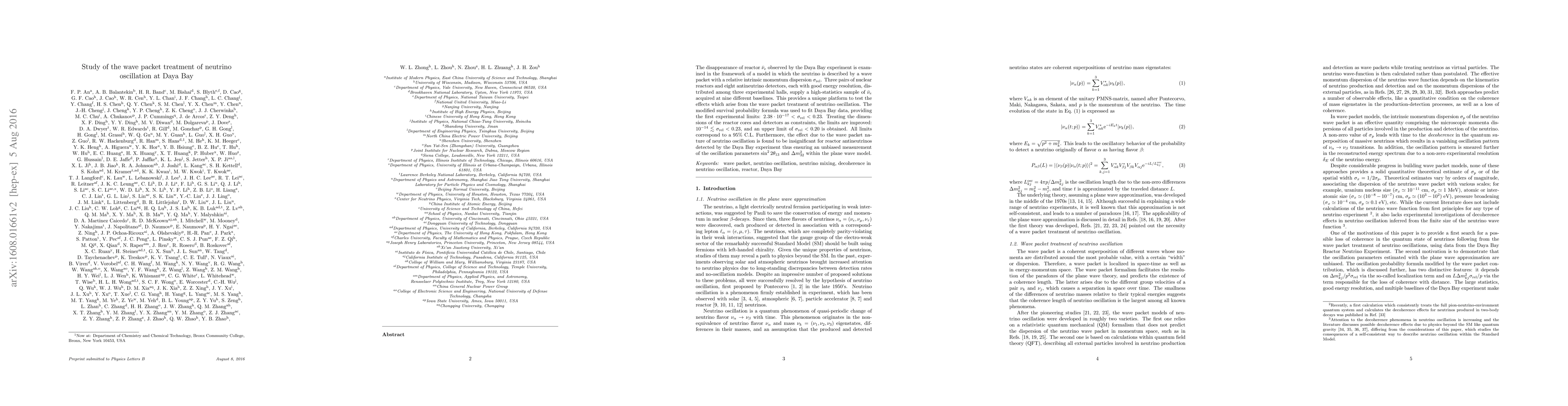 The Daya Bay experiment investigates reactor antineutrino disappearance using a wave packet model, finding insignificant wave packet effects on oscillation measurements. Experimental limits on the relative intrinsic momentum dispersion $\sigma_{\rm rel}$ are established, confirming the validity of the plane wave model for oscillation parameters.