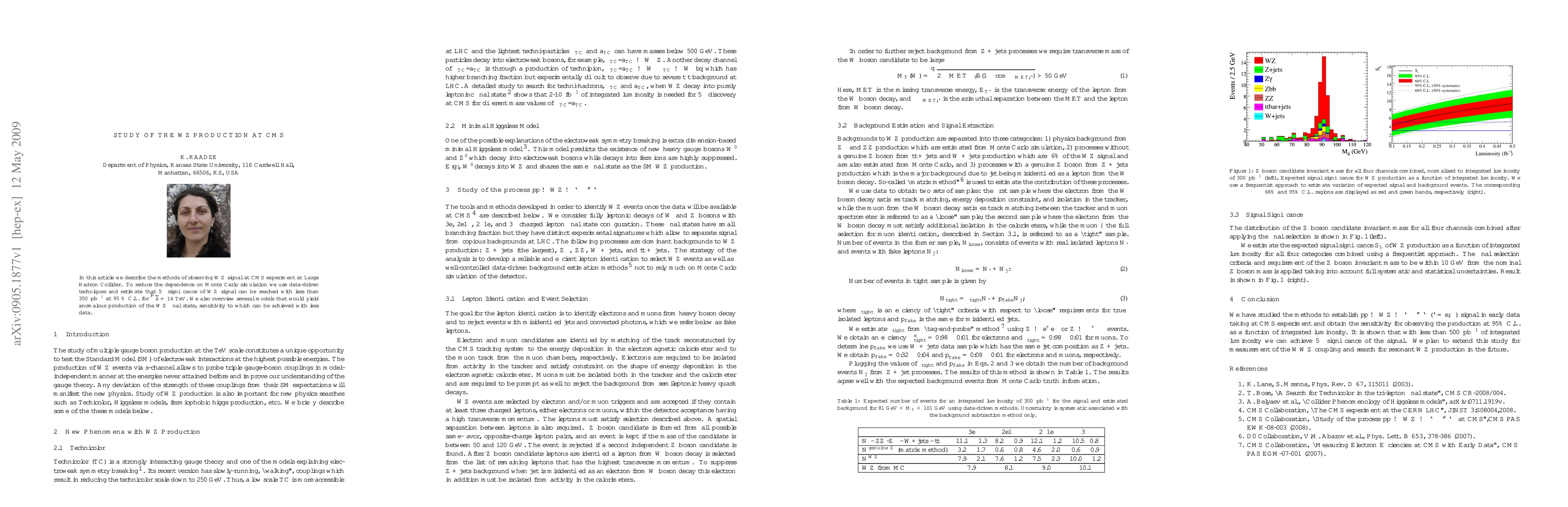 In this article we describe the methods of observing WZ signal at CMS experiment at Large Hadron Collider. To reduce the dependence on Monte Carlo simulation we use data-driven techniques and estimate that 5sigma significance of WZ signal can be reached with less than 350 pb^{-1} at 95% C.L. for sqrt{s} = 14 TeV. We also overview several models that would yield anomalous production of the WZ final state, sensitivity to which can be achieved with less data.