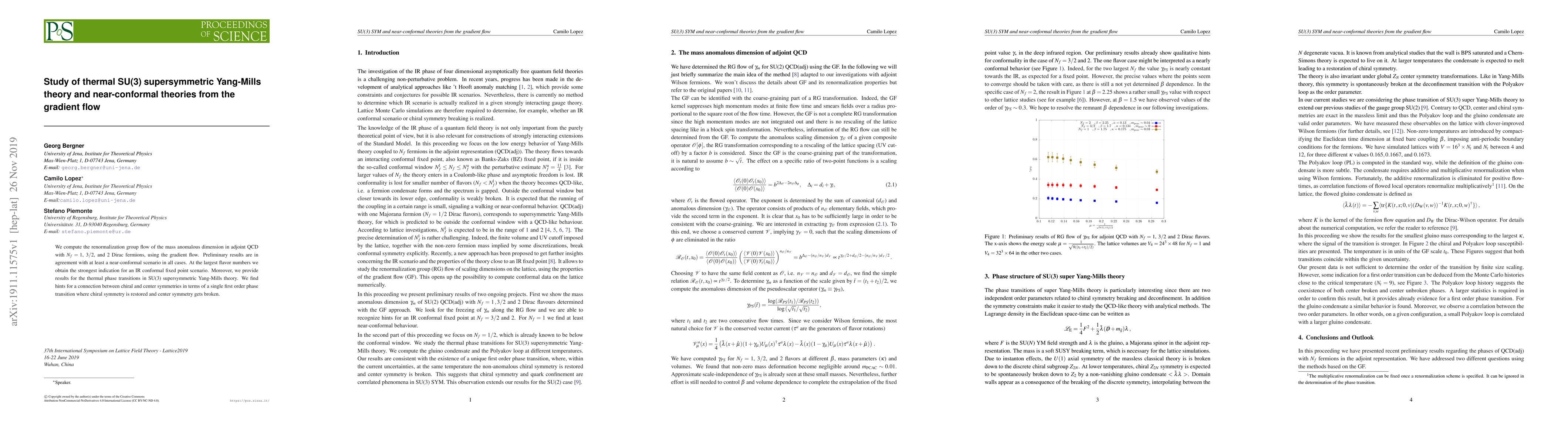 Researchers used gradient flow to study thermal SU(3) supersymmetric Yang-Mills theory and found evidence of near-conformal theories with a strong indication for an IR conformal fixed point scenario.
