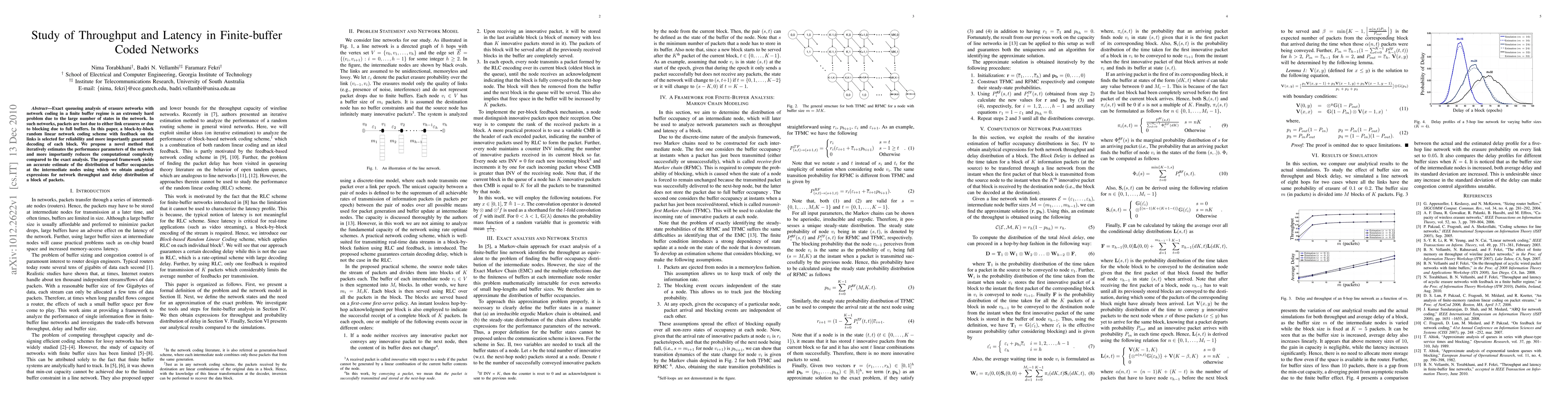 This paper proposes an iterative method to estimate throughput and latency in finite-buffer coded networks using network coding and feedback, reducing computational complexity. It provides analytical expressions for throughput and delay distribution by estimating buffer occupancies.