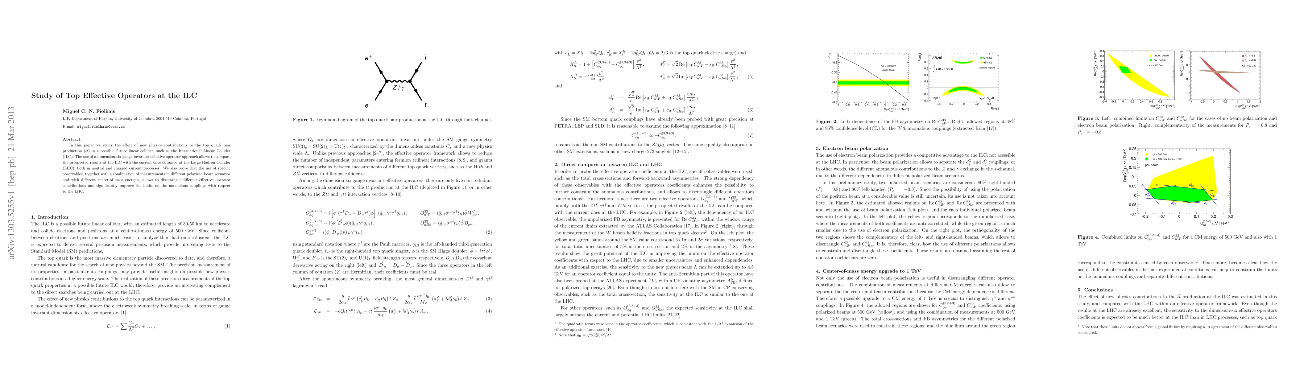 In this paper we study the effect of new physics contributions to the top quark pair production ($t\bar{t}$) in a possible future linear collider, such as the International Linear Collider (ILC). The use of a dimension-six gauge invariant effective operator approach allows to compare the prospected results at the ILC with the current ones obtained at the Large Hadron Collider (LHC), both in neutral and charged current processes. We also prove that the use of specific observables, together with a combination of measurements in different polarized beam scenarios and with different center-of-mass energies, allows to disentangle different effective operator contributions and significantly improve the limits on the anomalous couplings with respect to the LHC.