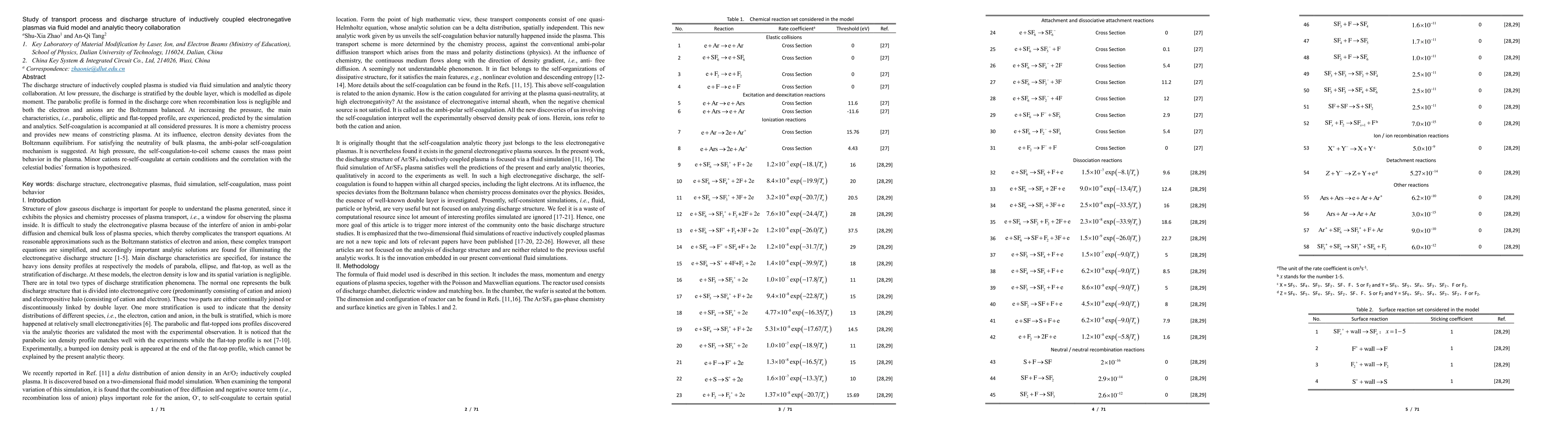 The discharge structure of inductively coupled plasma is studied via fluid simulation and analytic theory collaboration. At low pressure, the discharge is stratified by the double layer, which is modelled as dipole moment. The parabolic profile is formed in the discharge core when recombination loss is negligible and both the electron and anions are the Boltzmann balanced. At increasing the pressure, the main characteristics, i.e., parabolic, elliptic and flat-topped profile, are experienced, predicted by the simulation and analytics. Self-coagulation is accompanied at all considered pressures. It is more a chemistry process and provides new means of constricting plasma. At its influence, electron density deviates from the Boltzmann equilibrium. For satisfying the neutrality of bulk plasma, the ambi-polar self-coagulation mechanism is suggested. At high pressure, the self-coagulation-to-coil scheme causes the mass point behavior in the plasma. Minor cations re-self-coagulate at certain conditions and the correlation with the celestial bodies formation is hypothesized.