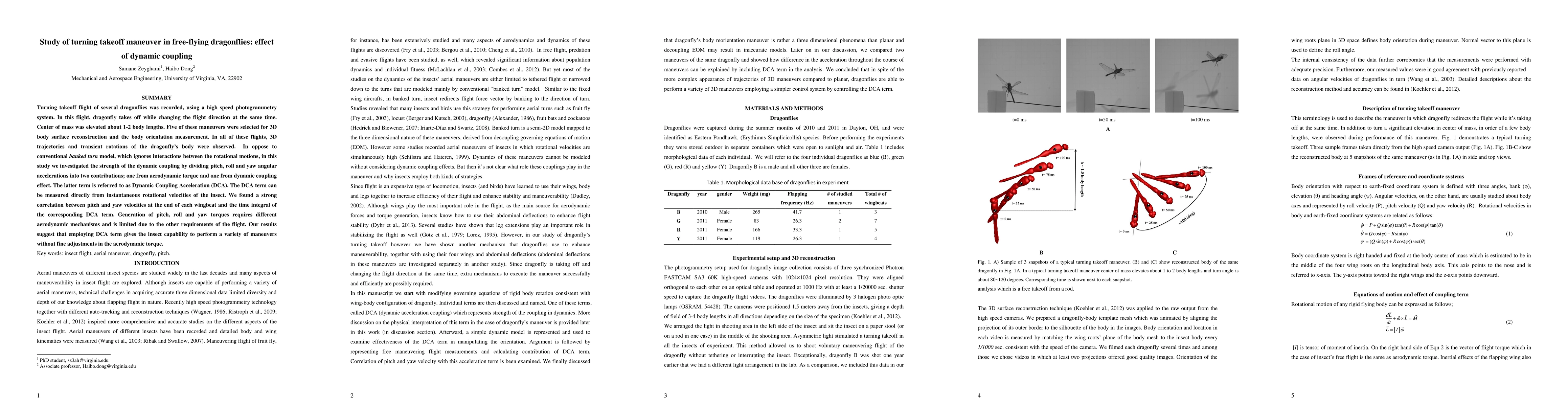 Researchers studied dragonflies' takeoff maneuvers, finding that dynamic coupling allows for flexible flight paths without adjusting aerodynamic torque, enabling varied maneuvers.