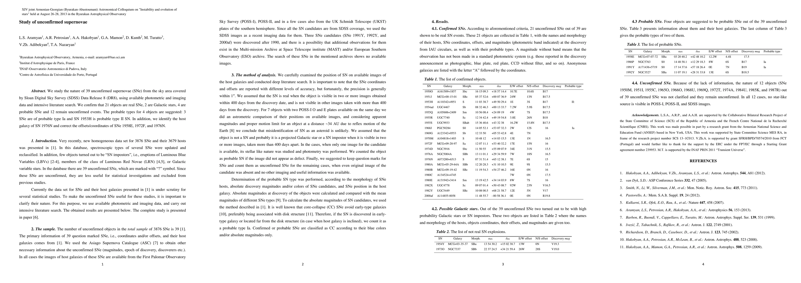 We study the nature of 39 unconfirmed supernovae (SNe) from the sky area covered by Sloan Digital Sky Survey (SDSS) Data Release 8 (DR8), using available photometric and imaging data and intensive literature search. We confirm that 21 objects are real SNe, 2 are Galactic stars, 4 are probable SNe and 12 remain unconfirmed events. The probable types for 4 objects are suggested: 3 SNe are of probable type Ia and SN 1953H is probable type II SN. In addition, we identify the host galaxy of SN 1976N and correct the offsets/coordinates of SNe 1958E, 1972F, and 1976N.