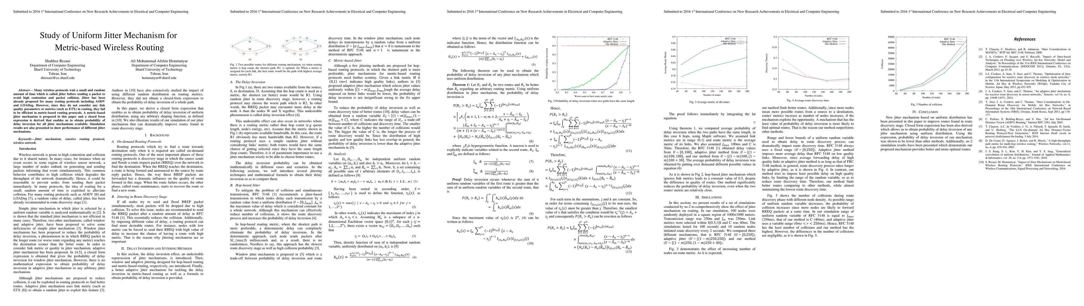 This paper proposes a metric-based jitter mechanism for wireless routing protocols to enhance efficiency by incorporating link quality metrics. A closed-form expression is derived to determine the probability of delay inversion, and simulation results demonstrate the performance of various jitter mechanisms.
