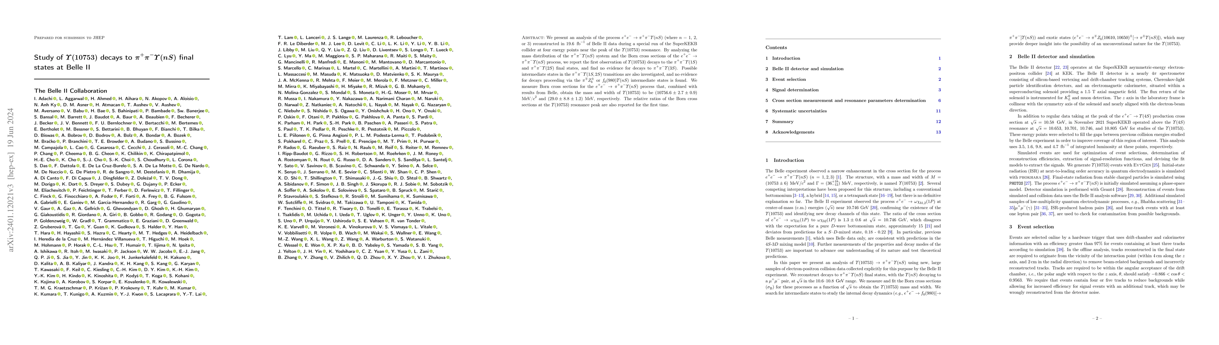 This study reports the first observation of $\Upsilon(10753)$ decays to $\pi^{+}\pi^{-}\Upsilon(1S)$ and $\pi^{+}\pi^{-}\Upsilon(2S)$ final states using Belle II data. No evidence for decays to $\pi^{+}\pi^{-}\Upsilon(3S)$ or intermediate states like $\pi^\mp Z_b^\pm$ or $f_0(980)\Upsilon(nS)$ was found. The analysis improved the precision of $\Upsilon(10753)$ mass and width measurements.