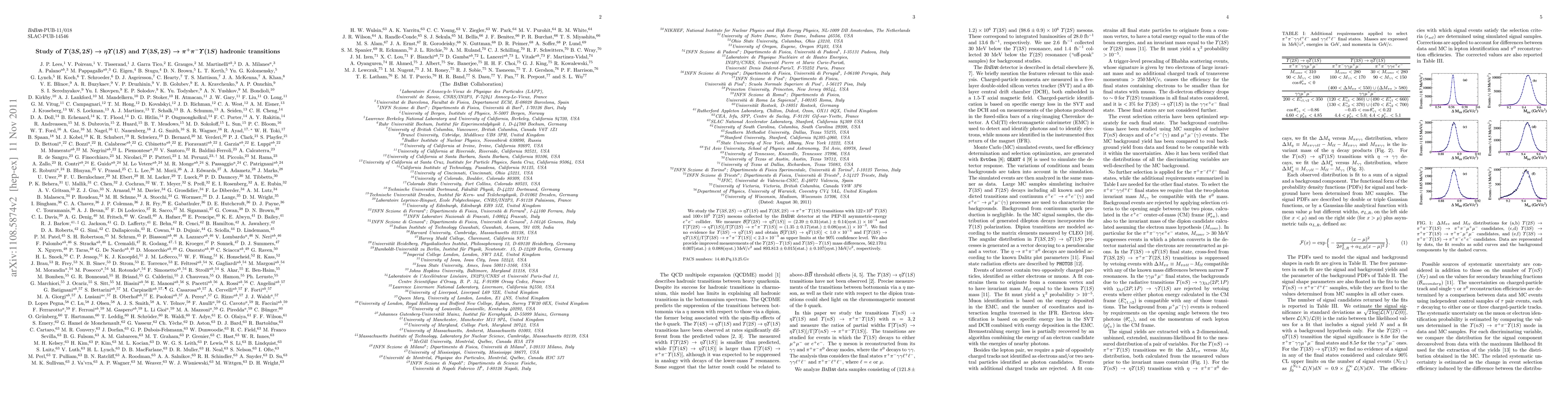 This study investigates the hadronic transitions of Upsilon(3S,2S) to eta Upsilon(1S) and pi+pi- Upsilon(1S) using data from the BaBar detector. The results show significant measurements for Upsilon(2S) transitions and provide upper limits for Upsilon(3S) transitions, while also improving mass difference measurements for Upsilon(2S) and Upsilon(3S) states.