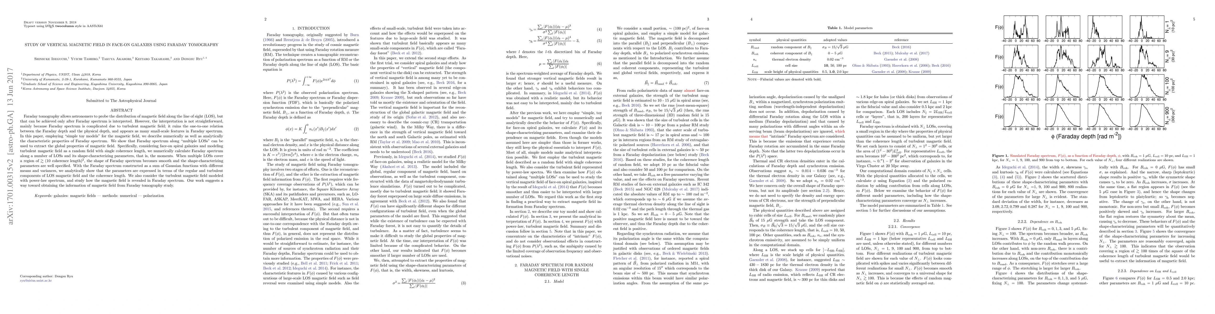 This paper investigates the use of Faraday tomography to study the vertical magnetic field in face-on galaxies, employing simple toy models to analyze the complex Faraday spectrum. The results suggest that multiple line-of-sight observations over a sufficiently large area can yield smooth Faraday spectra, allowing for the extraction of global magnetic field properties.