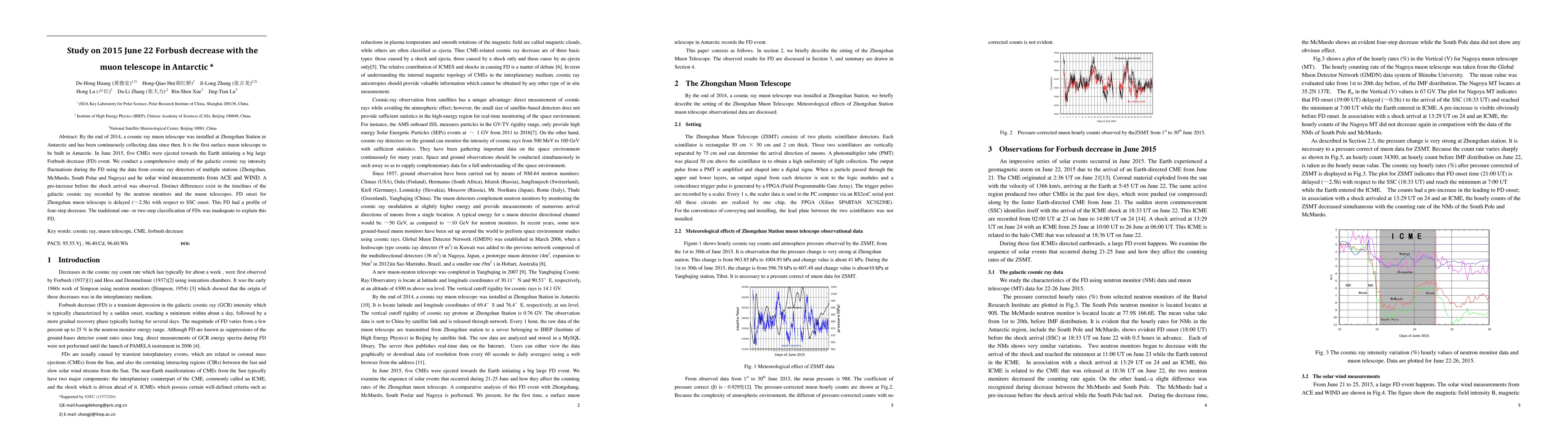 The research utilized a cosmic ray muon telescope at Zhongshan Station in Antarctica, along with data from multiple stations (Zhongshan, McMurdo, South Polar, and Nagoya) and solar wind measurements from ACE and WIND to study a Forbush decrease event on June 22, 2015.