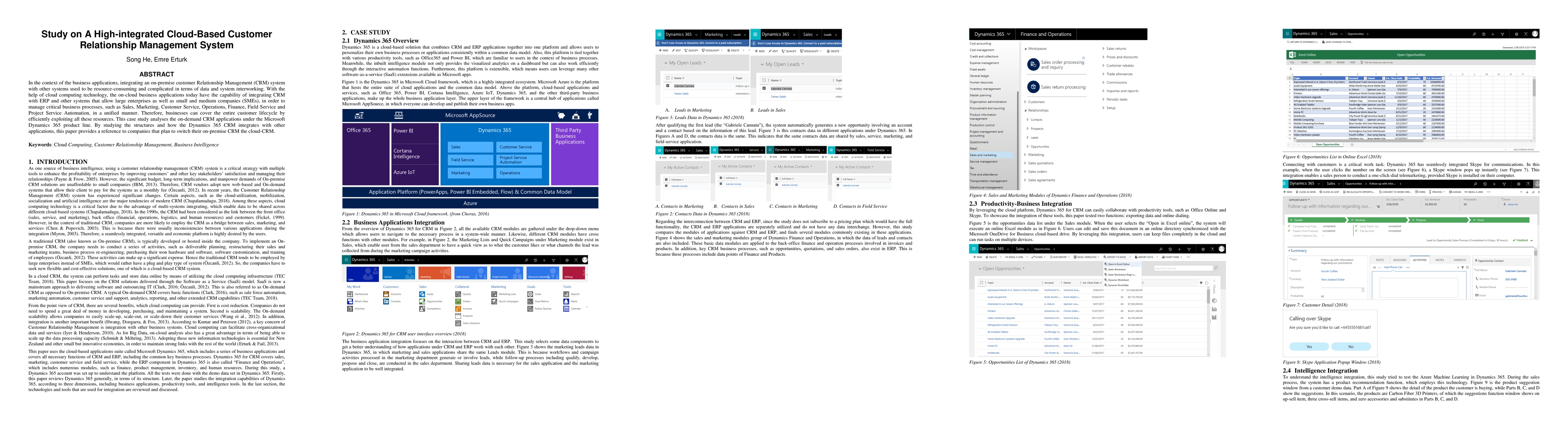 This paper presents a case study analyzing the integration capabilities of Microsoft Dynamics 365, a cloud-based CRM system, with other business applications like ERP and productivity tools.