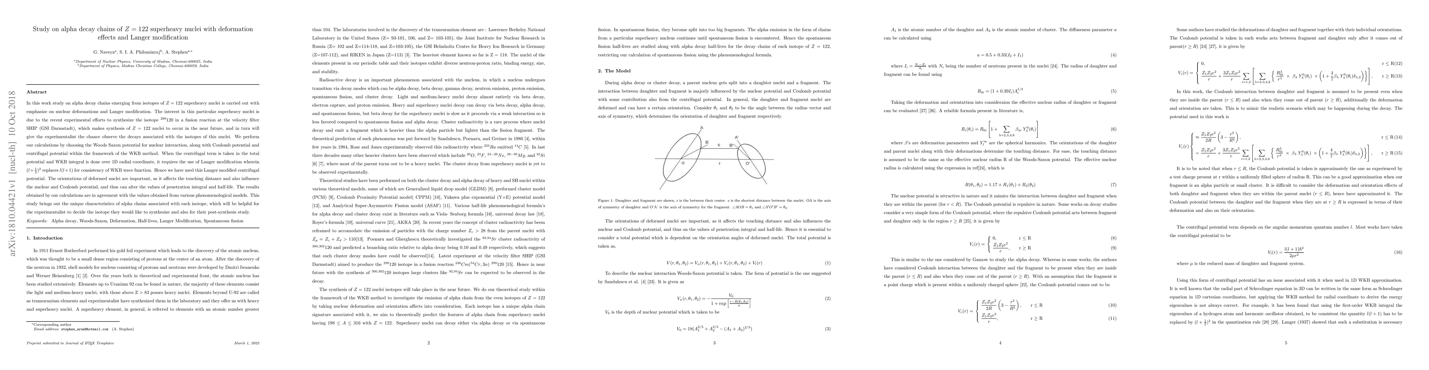 In this work study on alpha decay chains emerging from isotopes of Z = 122 superheavy nuclei is carried out with emphasize on nuclear deformations and Langer modification. The interest in this particular superheavy nuclei is due to the recent experimental efforts to synthesize the isotope ^{299}120 in a fusion reaction at the velocity filter SHIP (GSI Darmstadt), which makes synthesis of Z = 122 nuclei to occur in the near future, and in turn will give the experimentalist the chance observe the decays associated with the isotopes of this nuclei. We perform our calculations by choosing the Woods Saxon potential for nuclear interaction, along with Coulomb potential and centrifugal potential within the framework of the WKB method. When the centrifugal term is taken in the total potential and WKB integral is done over 1D radial coordinate, it requires the use of Langer modification wherein (l + 1/2 )^2 replaces l(l +1) for consistency of WKB wave function. Hence we have used this Langer modified centrifugal potential. The orientations of deformed nuclei are important, as it affects the touching distance and also influence the nuclear and Coulomb potential, and thus can alter the values of penetration integral and half-life. The results obtained by our calculations are in agreement with the values obtained from various phenomenological models. This study brings out the unique characteristics of alpha chains associated with each isotope, which will be helpful for the experimentalist to decide the isotope they would like to synthesize and also for their post-synthesis study.