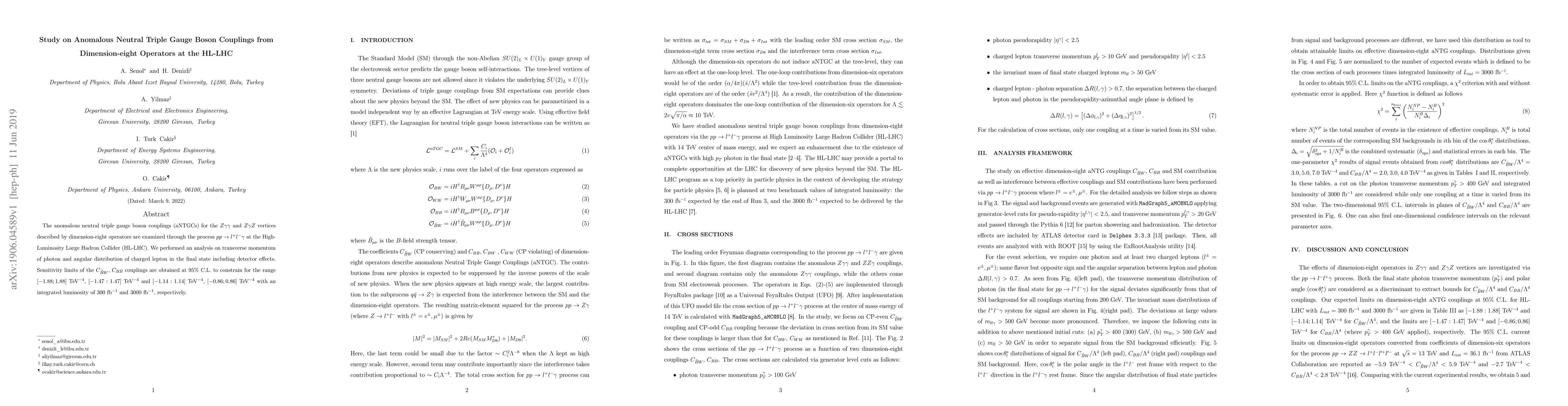 This study investigates anomalous neutral triple gauge boson couplings via dimension-eight operators at the HL-LHC, focusing on the Z gamma gamma and Z gamma Z vertices. Sensitivity limits are derived for C_{\widetilde{B}W} and C_{BB} couplings, constraining their values within specified ranges using an integrated luminosity of 300 fb^{-1} and 3000 fb^{-1}.