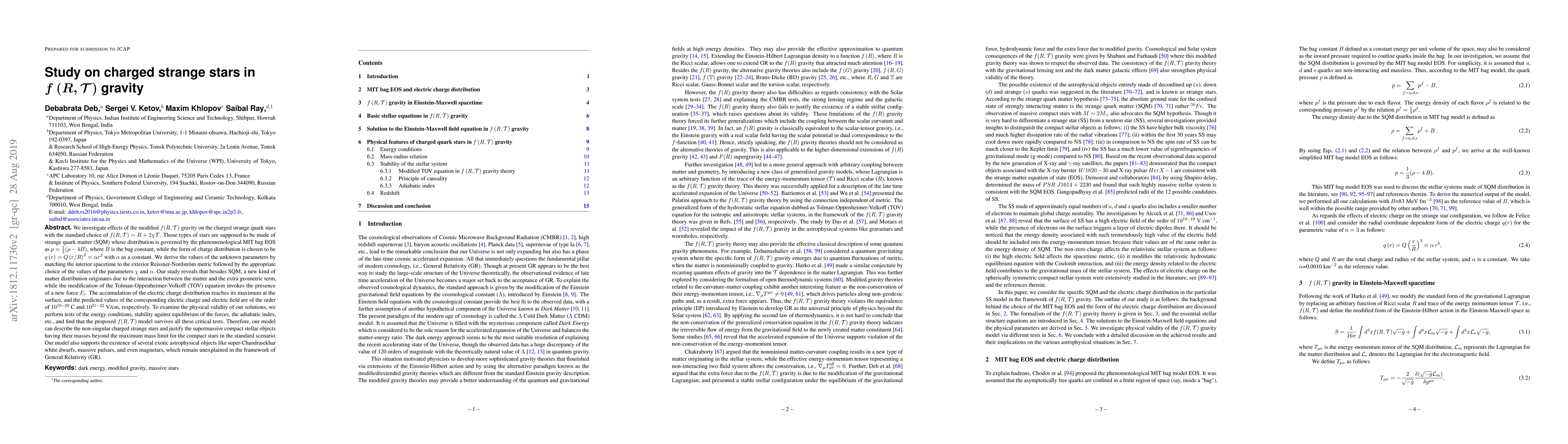 This study explores charged strange quark stars under modified $f(R, \mathcal{T})$ gravity, revealing a new matter distribution and a force $F_c$ due to the interaction between matter and geometry. The model passes critical tests and supports the existence of exotic astrophysical objects beyond GR's limits.