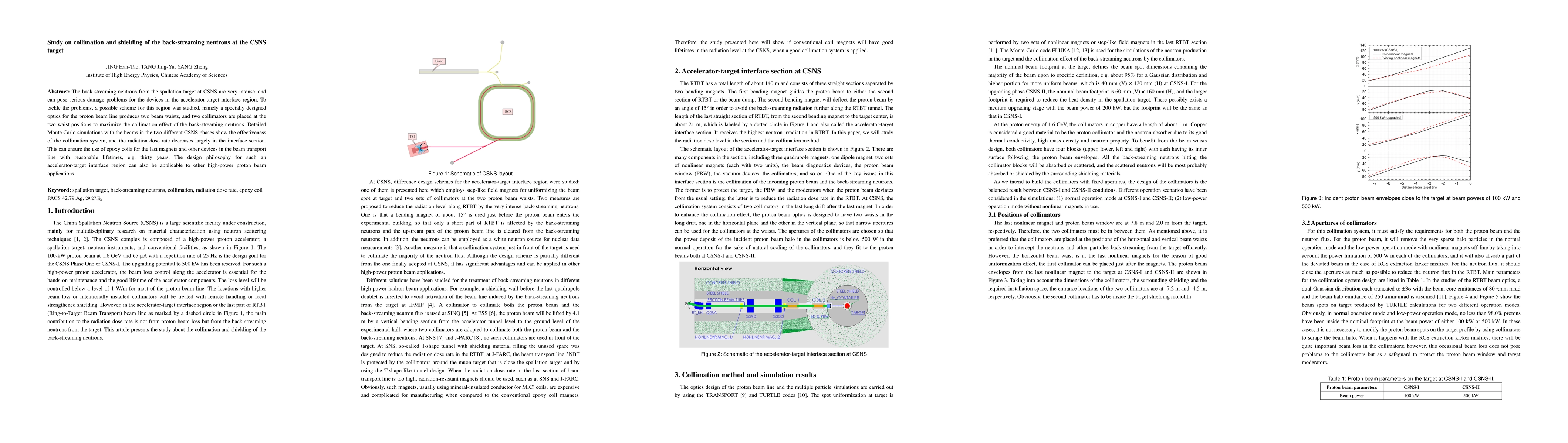This study investigates a collimation and shielding scheme to mitigate intense back-streaming neutrons from the CSNS spallation target, employing specially designed optics and two collimators to reduce neutron intensity. Monte Carlo simulations demonstrate significant dose rate reduction, ensuring the longevity of epoxy coils in the accelerator-target interface region.