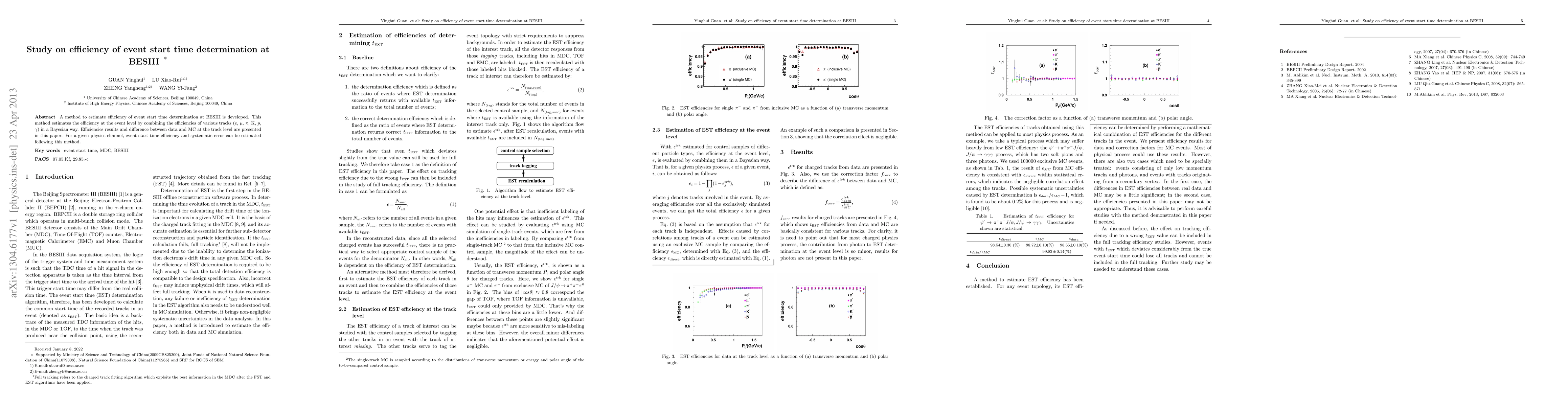Researchers developed a method to estimate efficiency of event start time determination at BESIII, combining track efficiencies using Bayesian methods, providing insights into physics channel performance and systematic errors.
