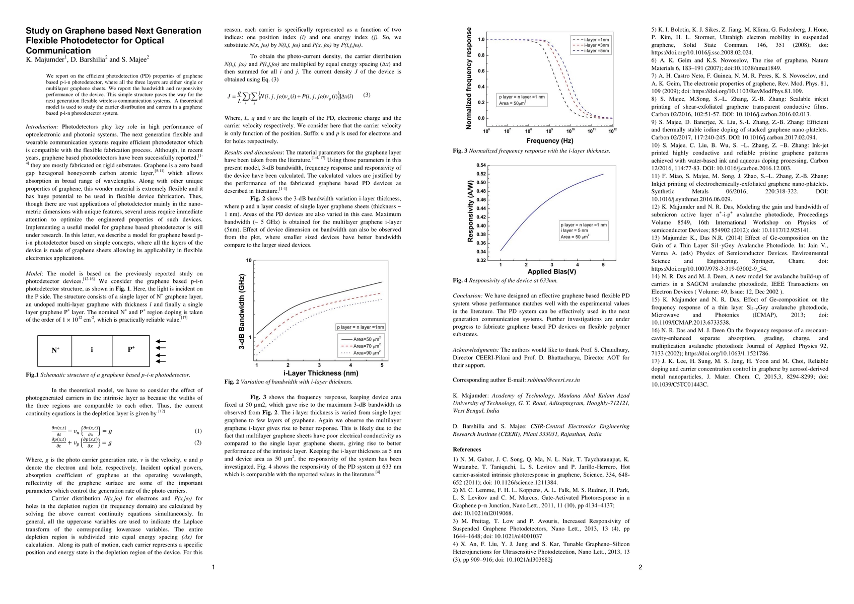 This study investigates the efficient photodetection properties of a graphene-based p-i-n photodetector, demonstrating its potential for next-generation flexible optical communication systems. The research highlights the device's bandwidth and responsivity, supported by a theoretical model analyzing carrier distribution and current.