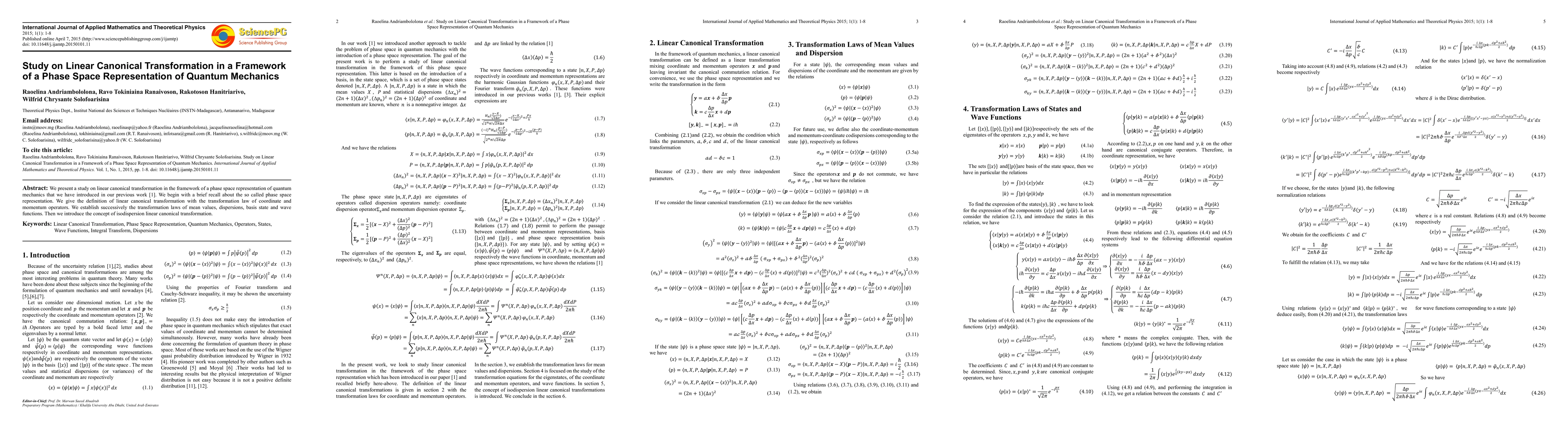 This paper explores linear canonical transformations within the phase space framework of quantum mechanics, defining transformation laws for coordinate and momentum operators, and establishing rules for mean values, dispersions, basis states, and wave functions. It also introduces the concept of isodispersion linear canonical transformation.