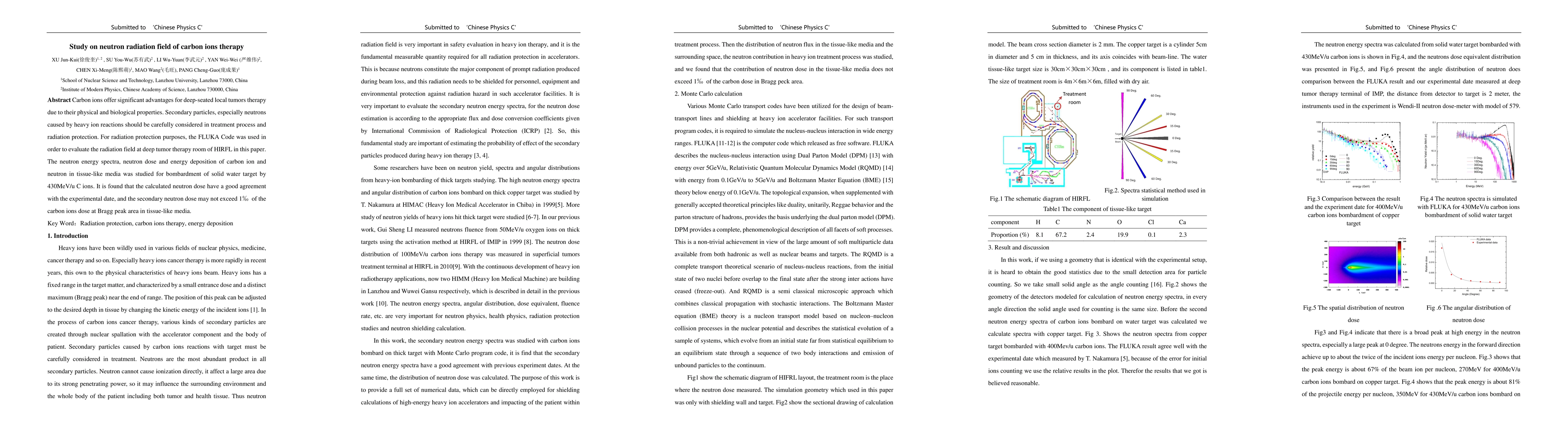 This study used the FLUKA Code to evaluate neutron radiation fields near deep tumor treatment rooms for carbon ion therapy at HIRFL. Key findings indicate that neutron doses align well with experimental data, and neutron doses are significantly lower than carbon ion doses at the Bragg peak in tissue-like media, posing minimal radiation protection concerns.
